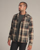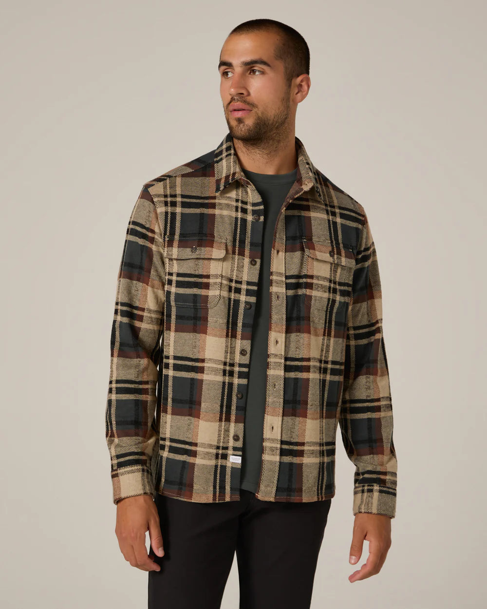 This soft-touch, double-knit jacquard shirt pairs a designer-made plaid pattern with 4-way stretch for all-day comfort. Finished with chest flap pockets, faux-horn buttons, and a curved hem for a clean, tailored look.
