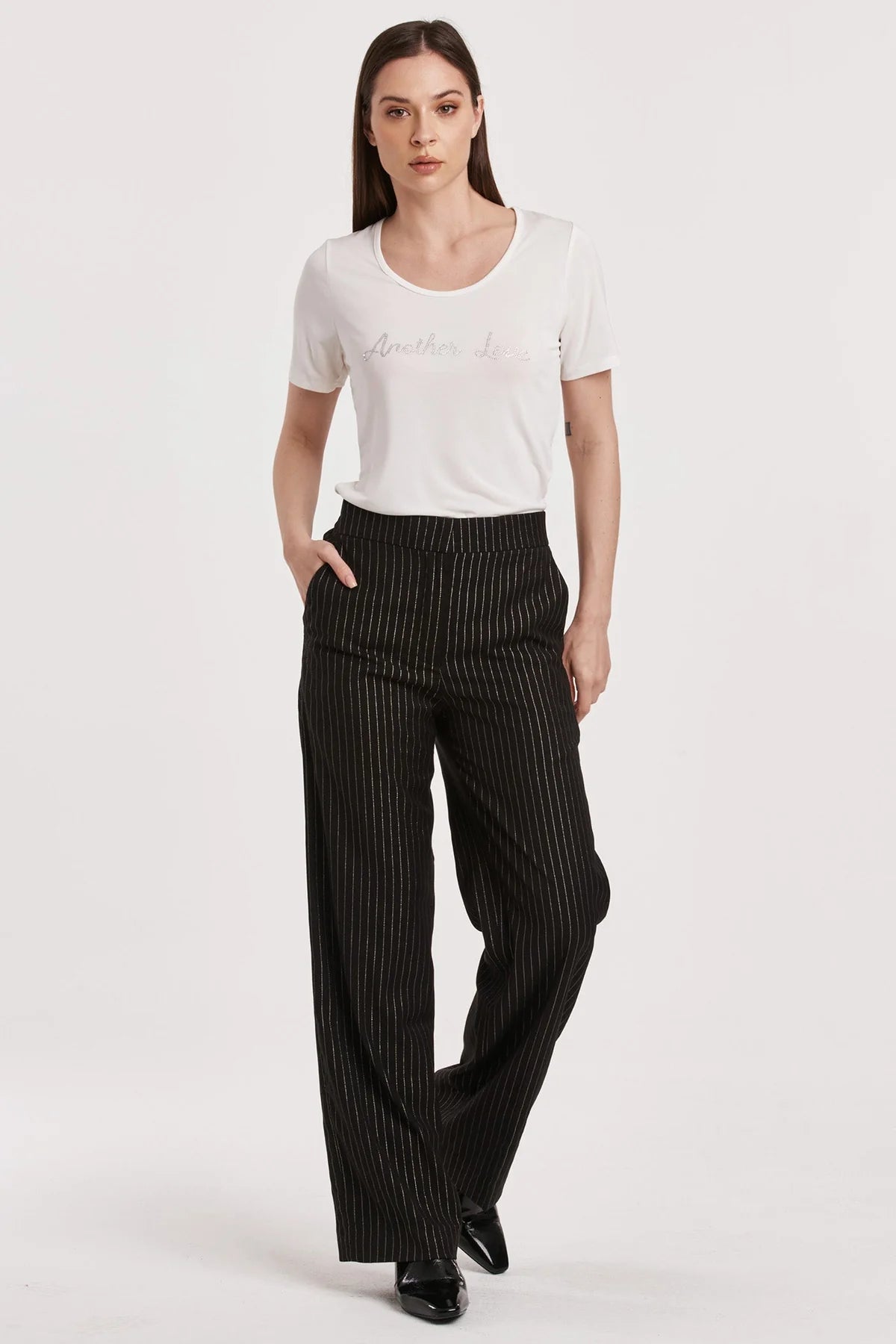 Another Love Azula High Waist Elastic Back Pinstripe Pant- Black/Silver