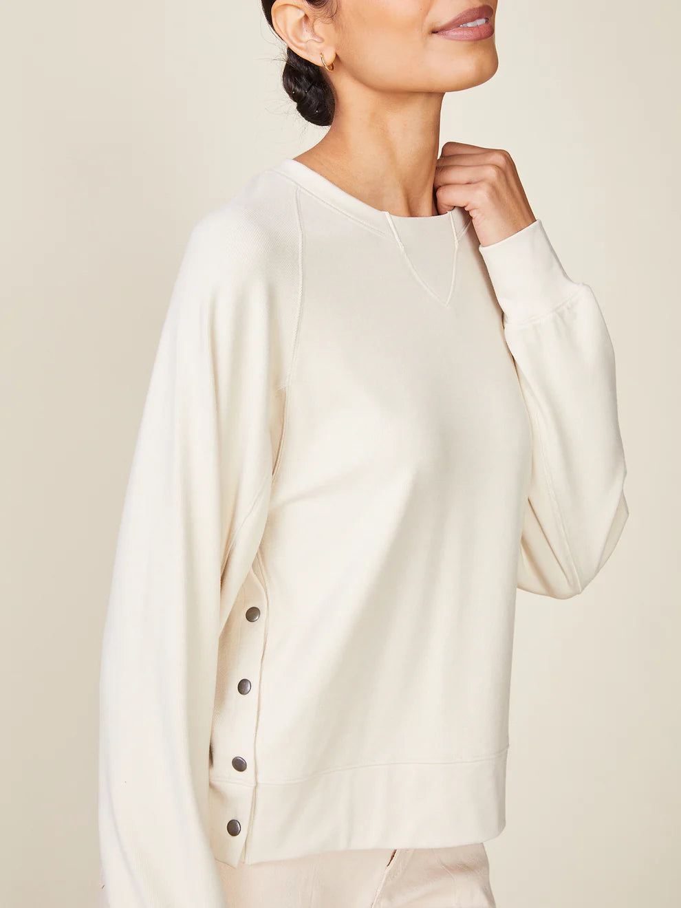 Anthem the Label Raglan Duet Pullover with Side Snaps- Almond