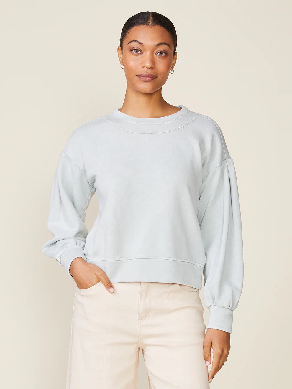 Anthem the Label Drop Shoulder Washed French Terry Pullover- Seagrass