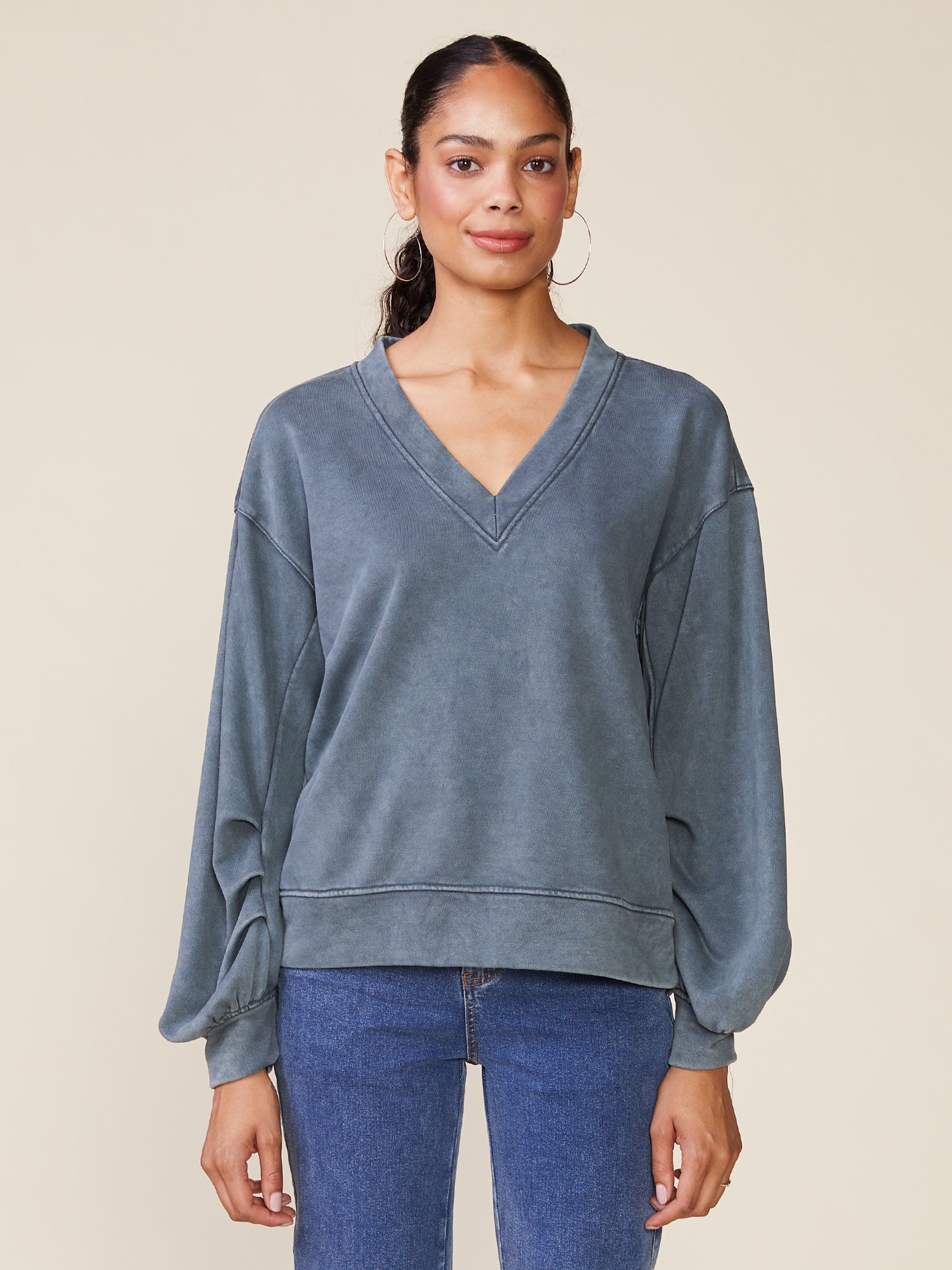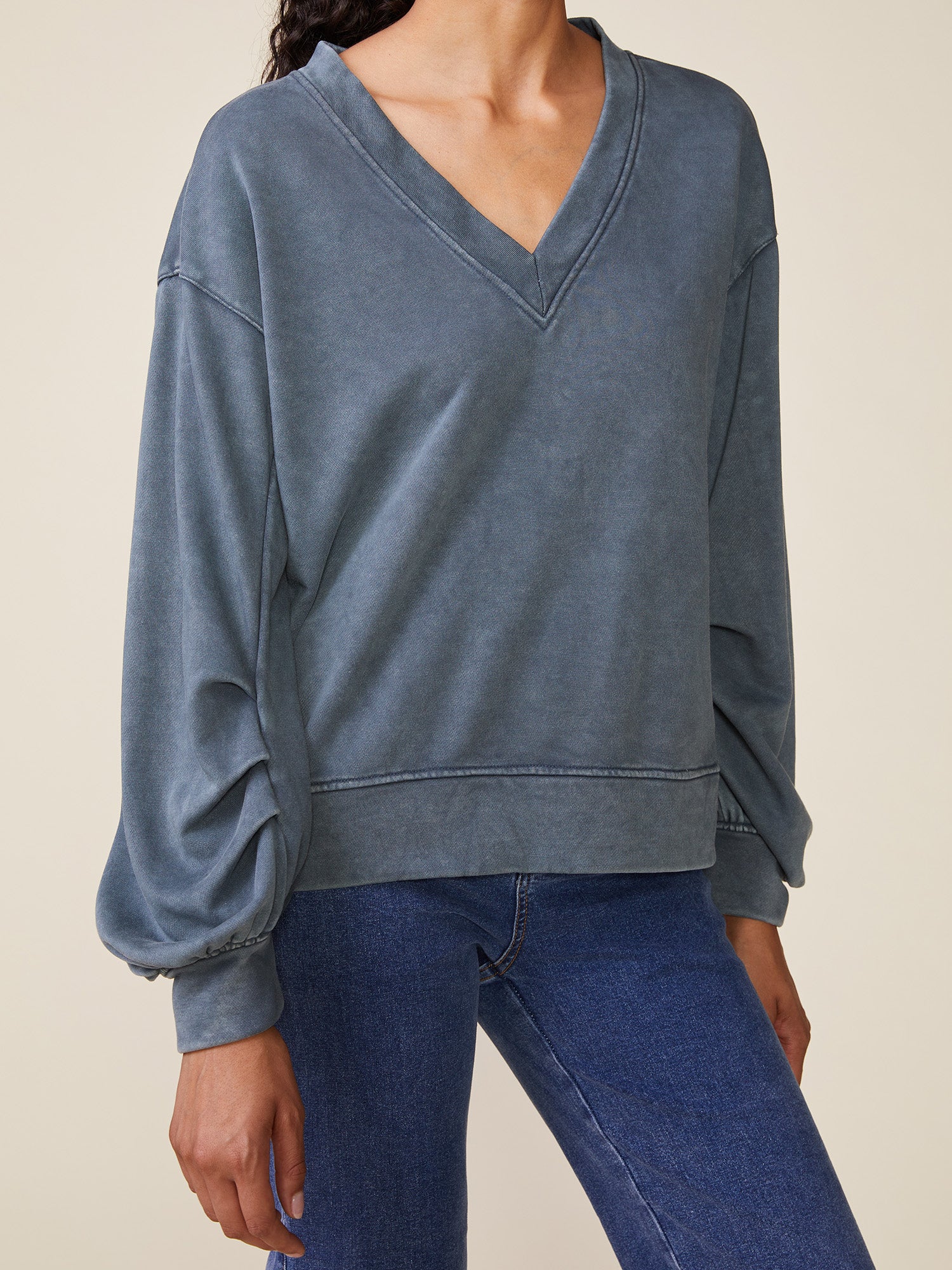 Anthem the Label Washed Knit V-Neck Pullover- Slate