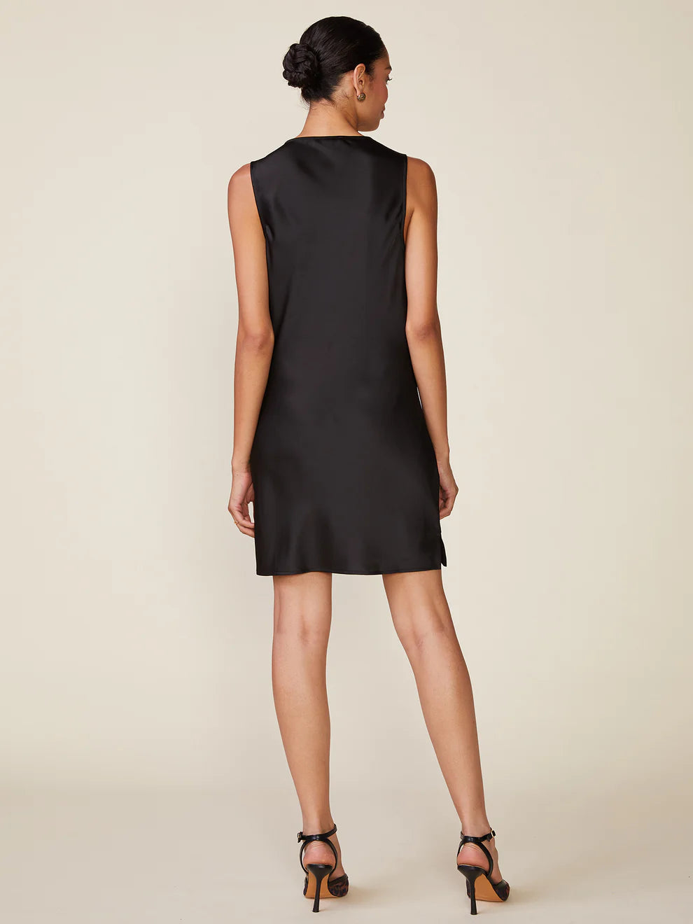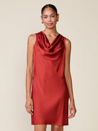 Make a statement in our sunset satin slip dress. This simply irresistible, expertly crafted cowl neck is detail enough for this stunning sleeveless mini dress.