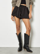 Apricot Bubble Hem Mini Shorts- Black
