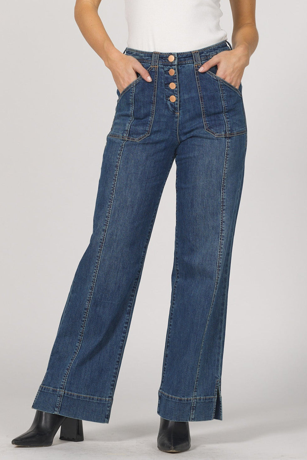 Dear John Holly Button Front Wide Leg Split Hem Jean- Kentfield