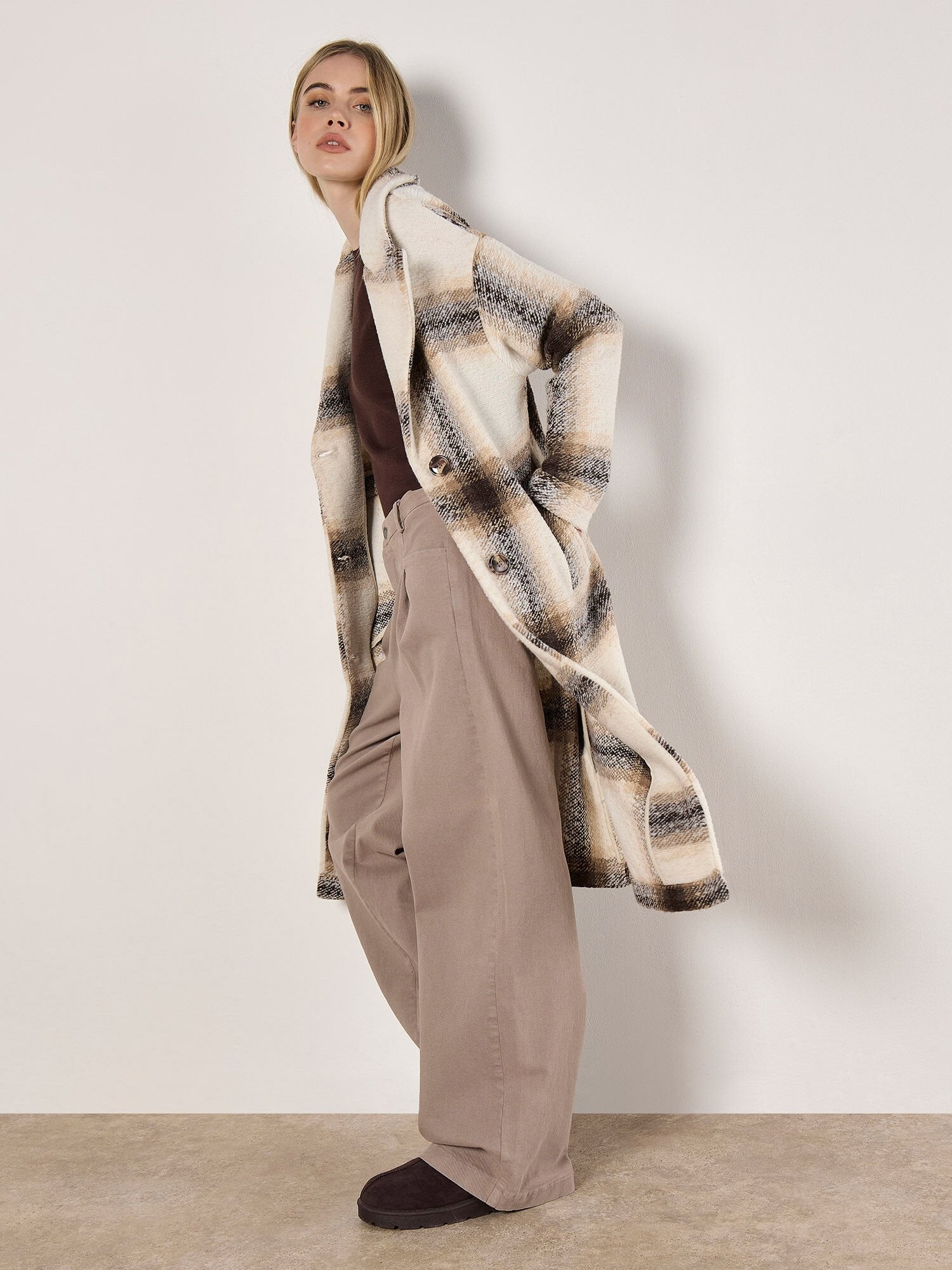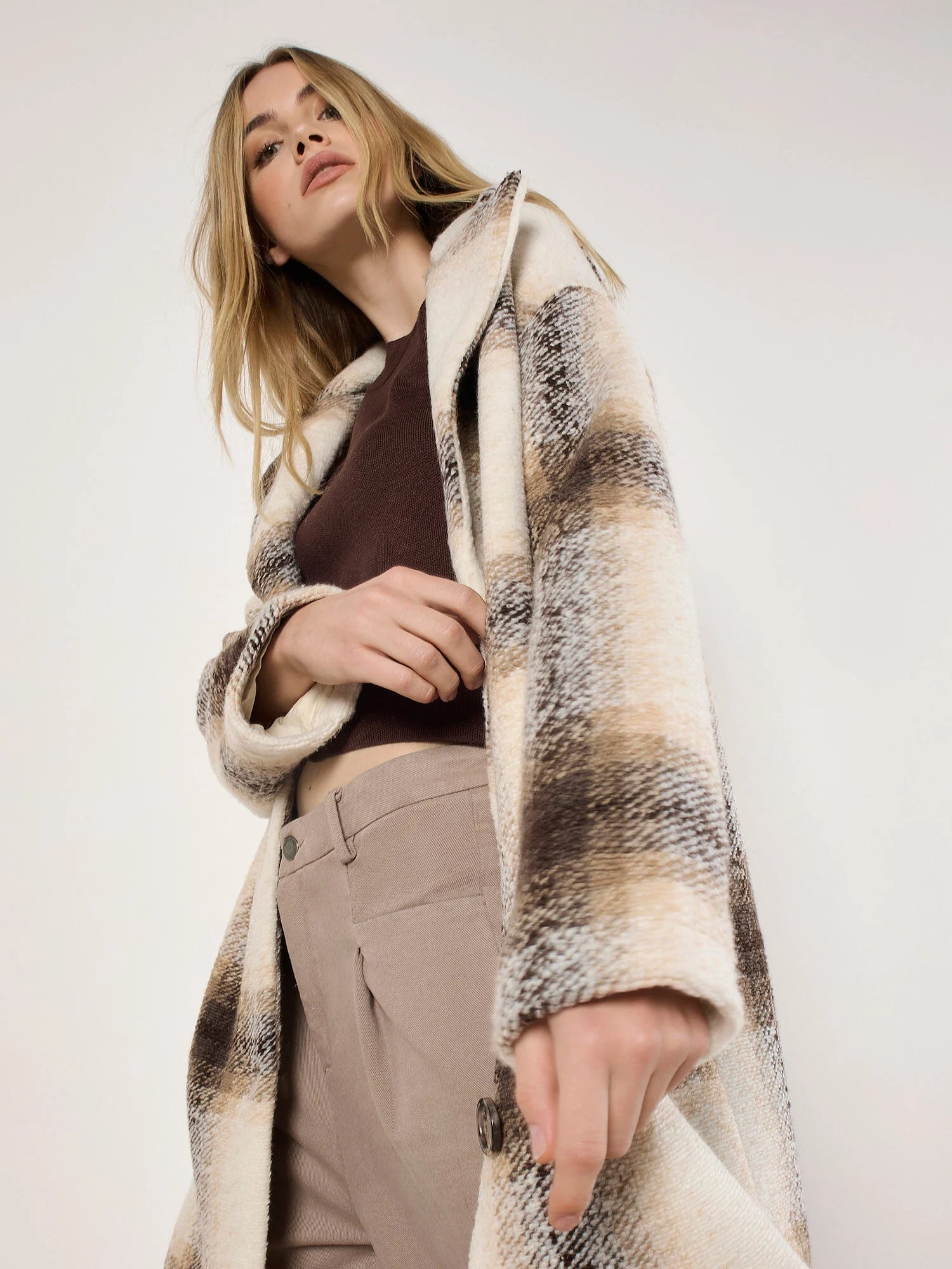Apricot Soft Oversized Large Scale Check Coat- Cream