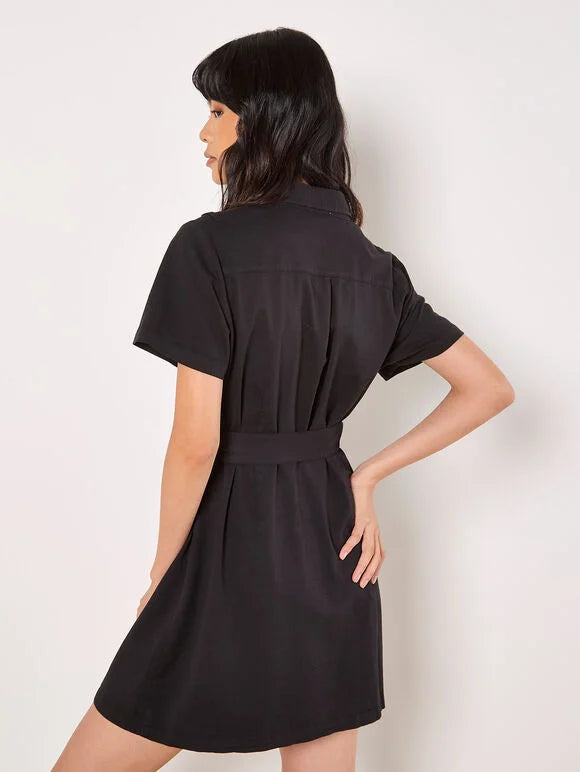 Apricot Utility Cargo Mini Dress w/ Belt- Black