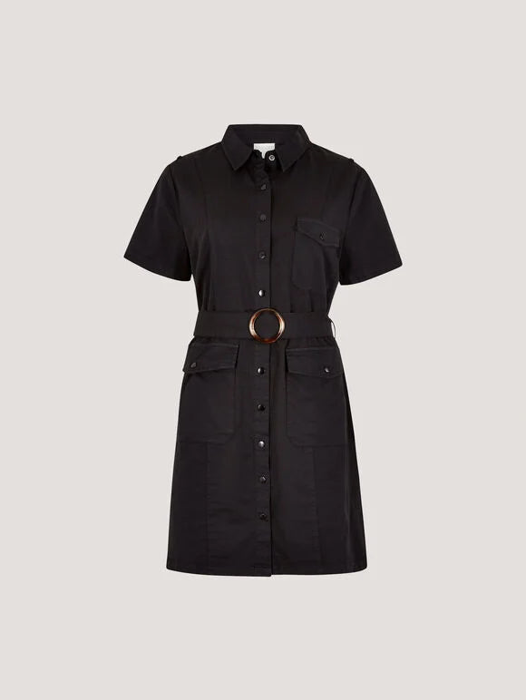 Tap into utility style with this cargo mini dress. Framed by a collared neckline and short sleeves, it boasts popper fastenings, a fabric belt w/ tortoise look buckle to create a flattering fit, and plenty of practical pockets. Complete the look with chunky boots.
