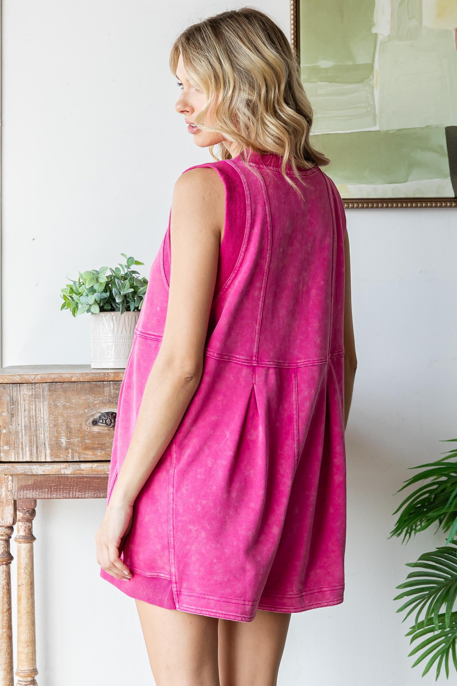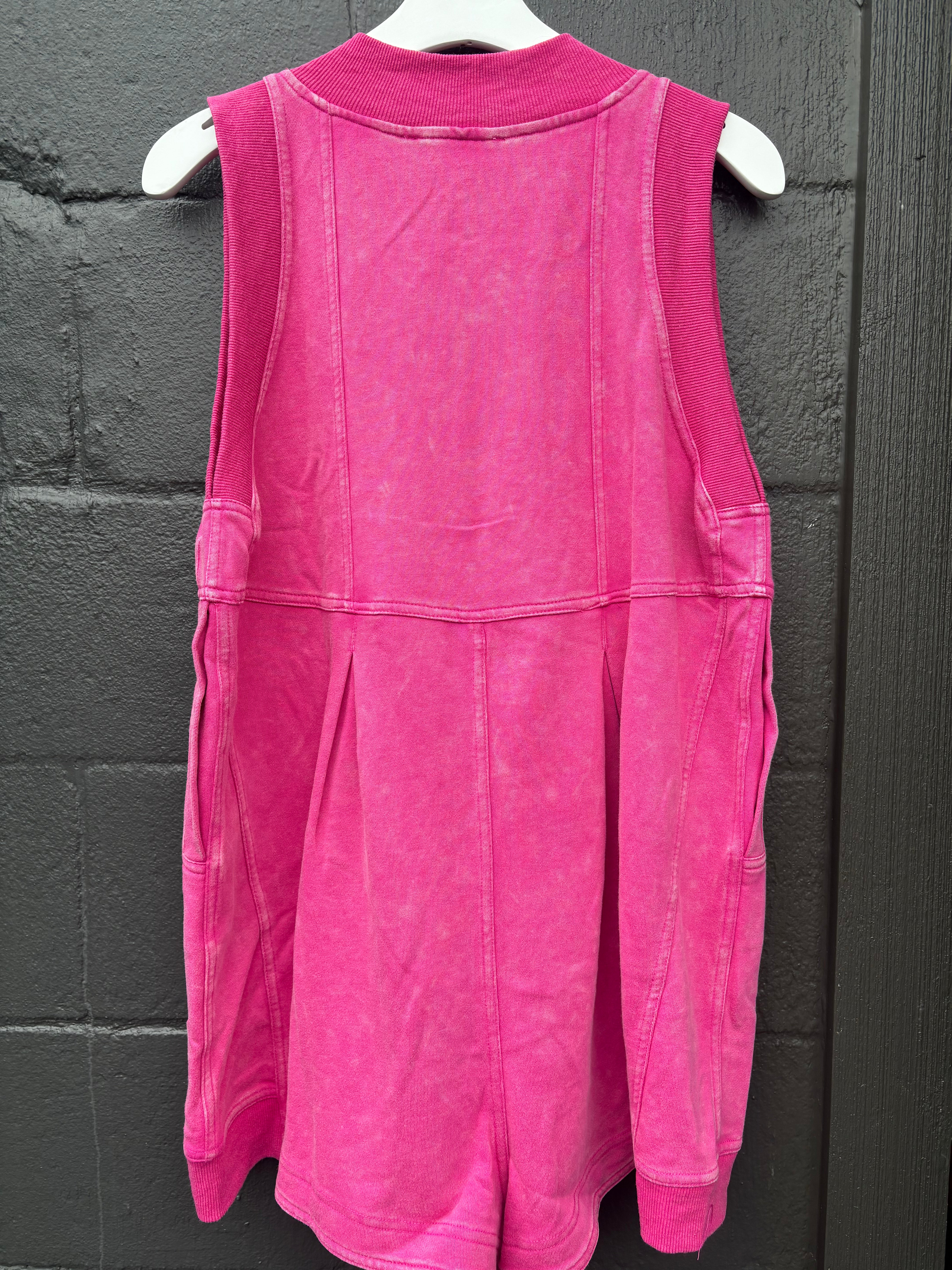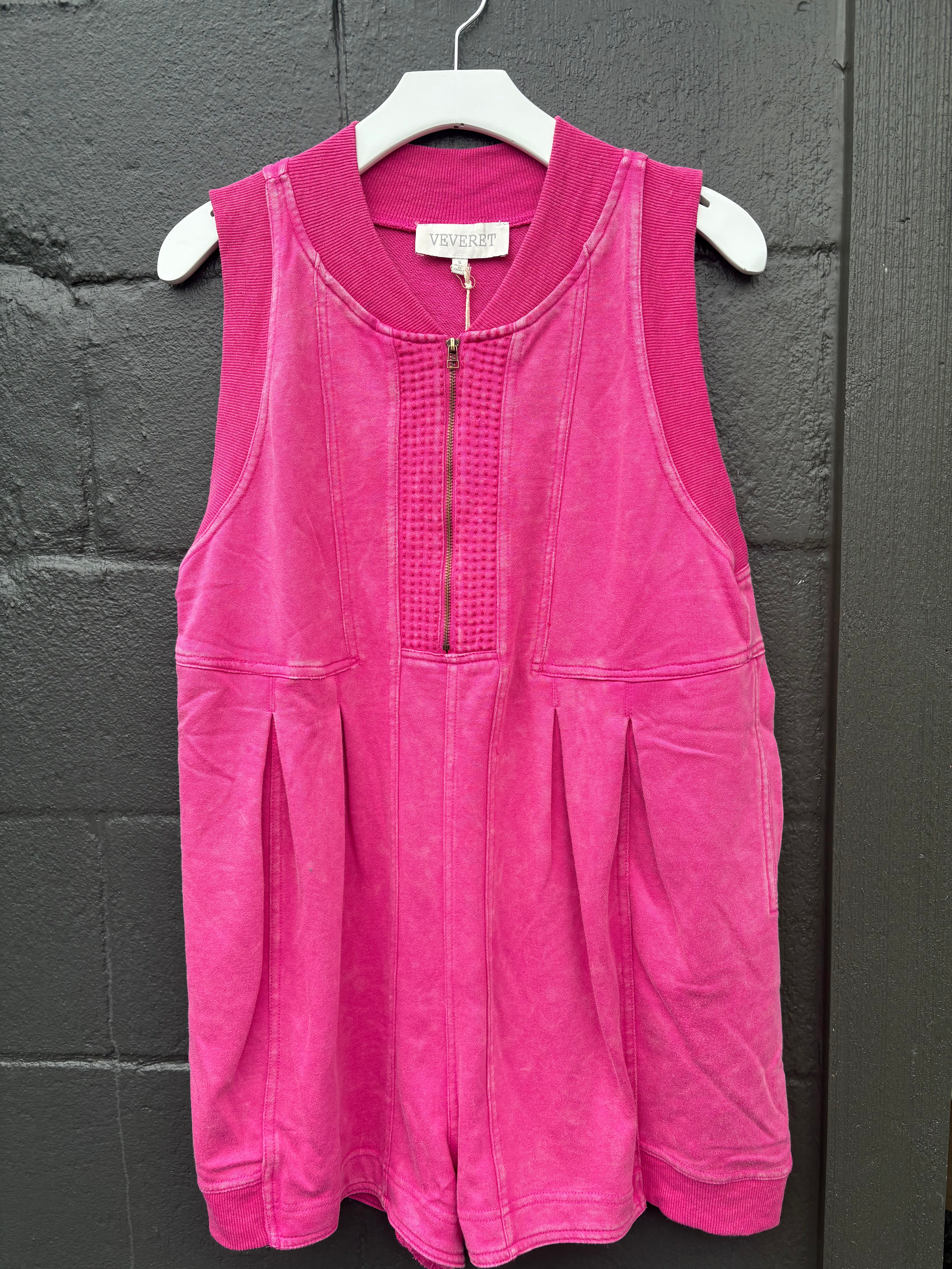 Veveret French Terry Sleeveless Romper- Magenta