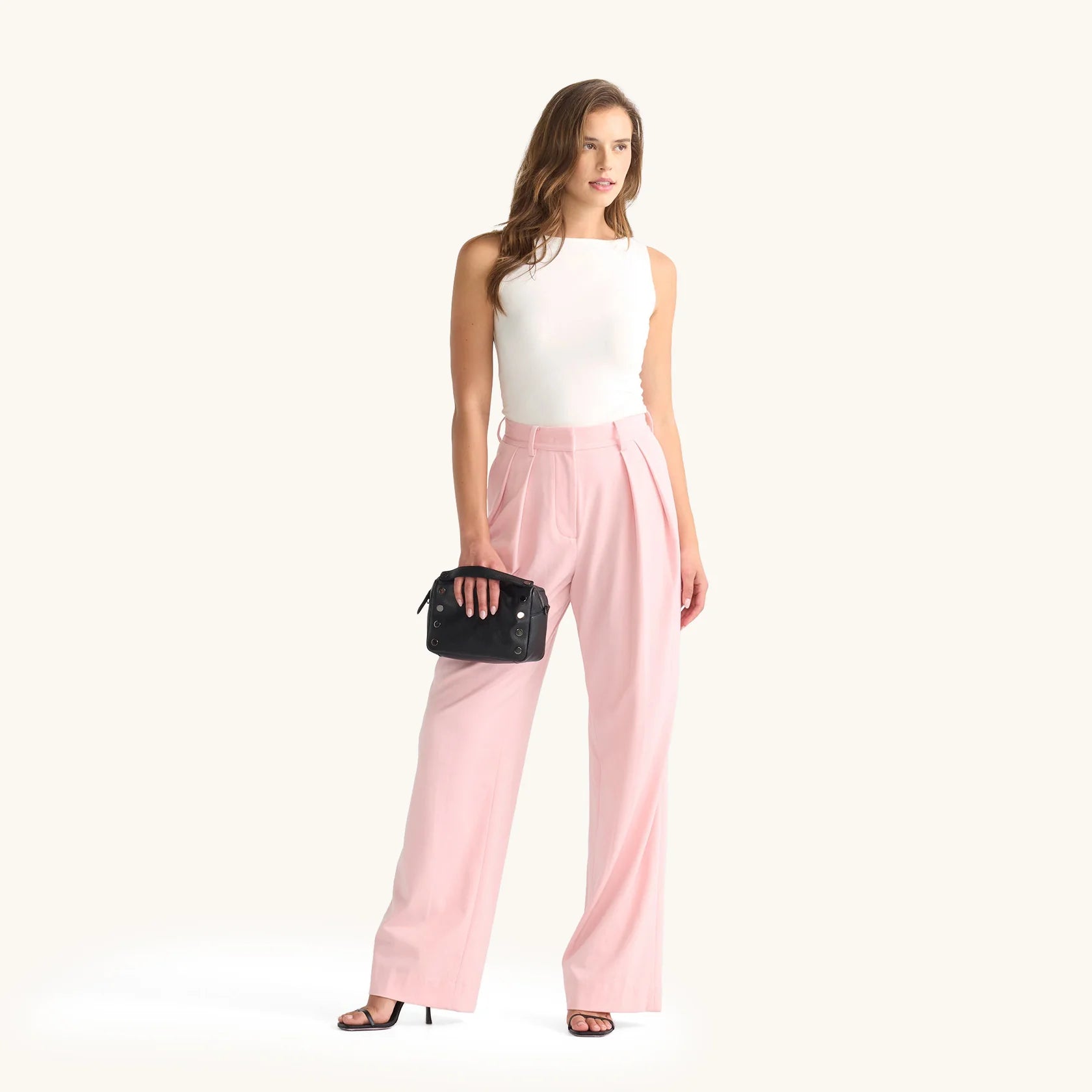 - Detachable and adjustable crossbody strap + flat top handle