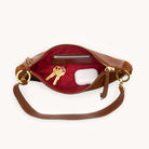 • Exterior: tassel zipper pull, O-rings for strap attachments, back zip cell pocket - vertical opening, zippered main compartment