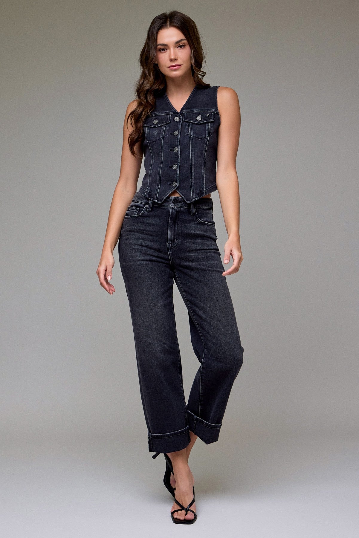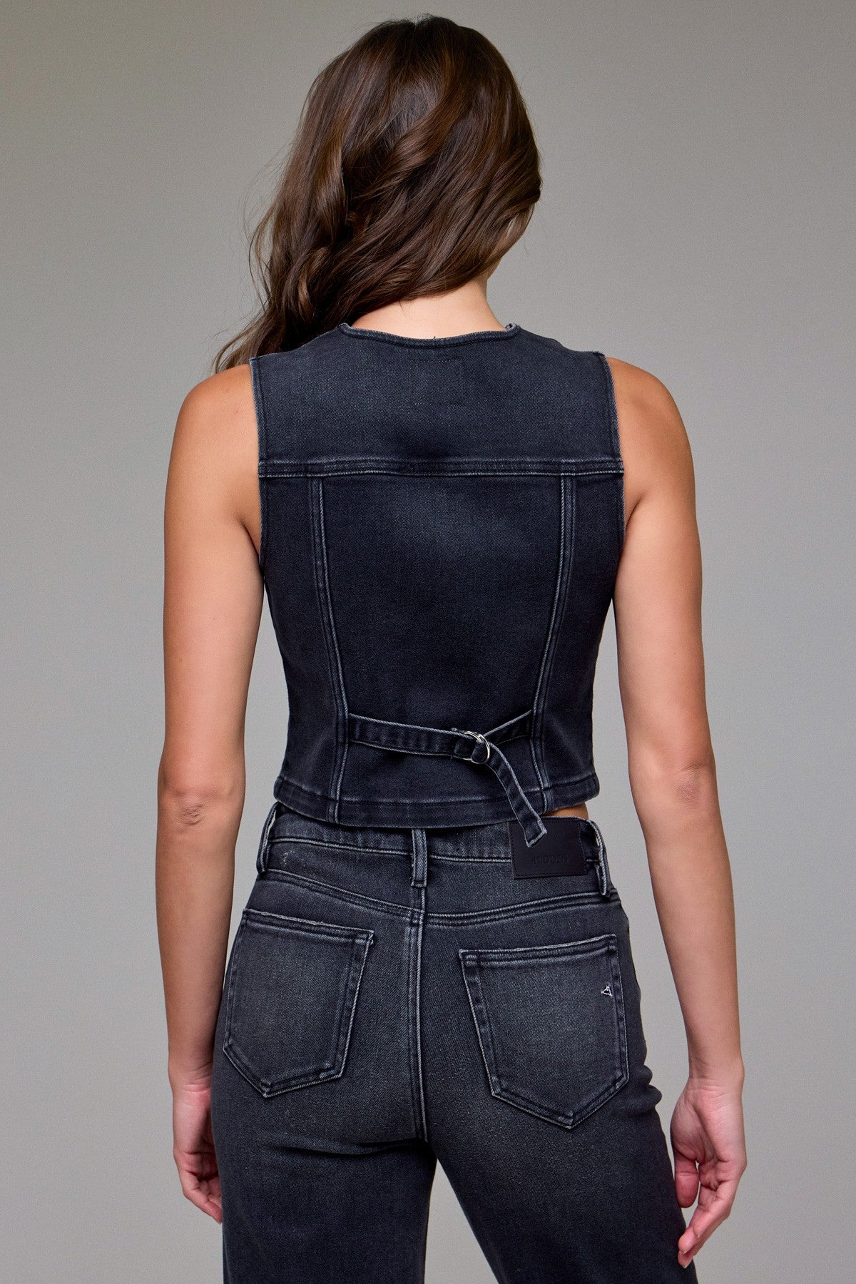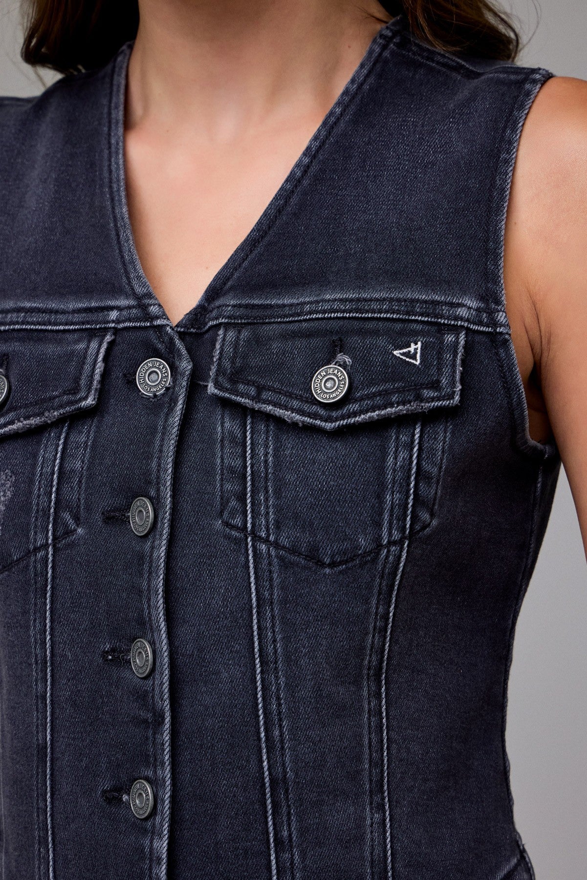 Hidden Fitted Denim Vest- Charcoal