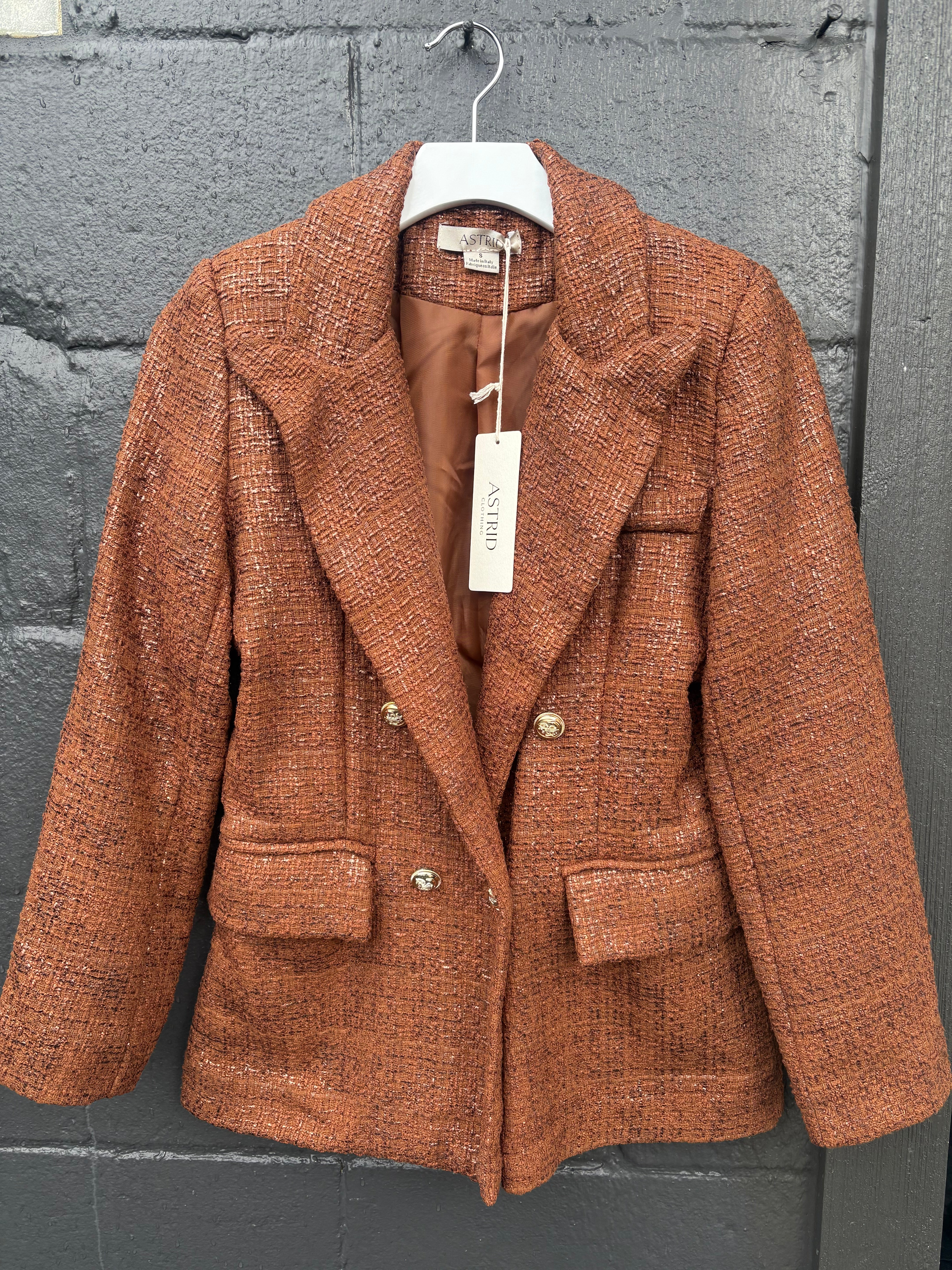 Astrid Presley Tweed Blazer Jacket- Cognac