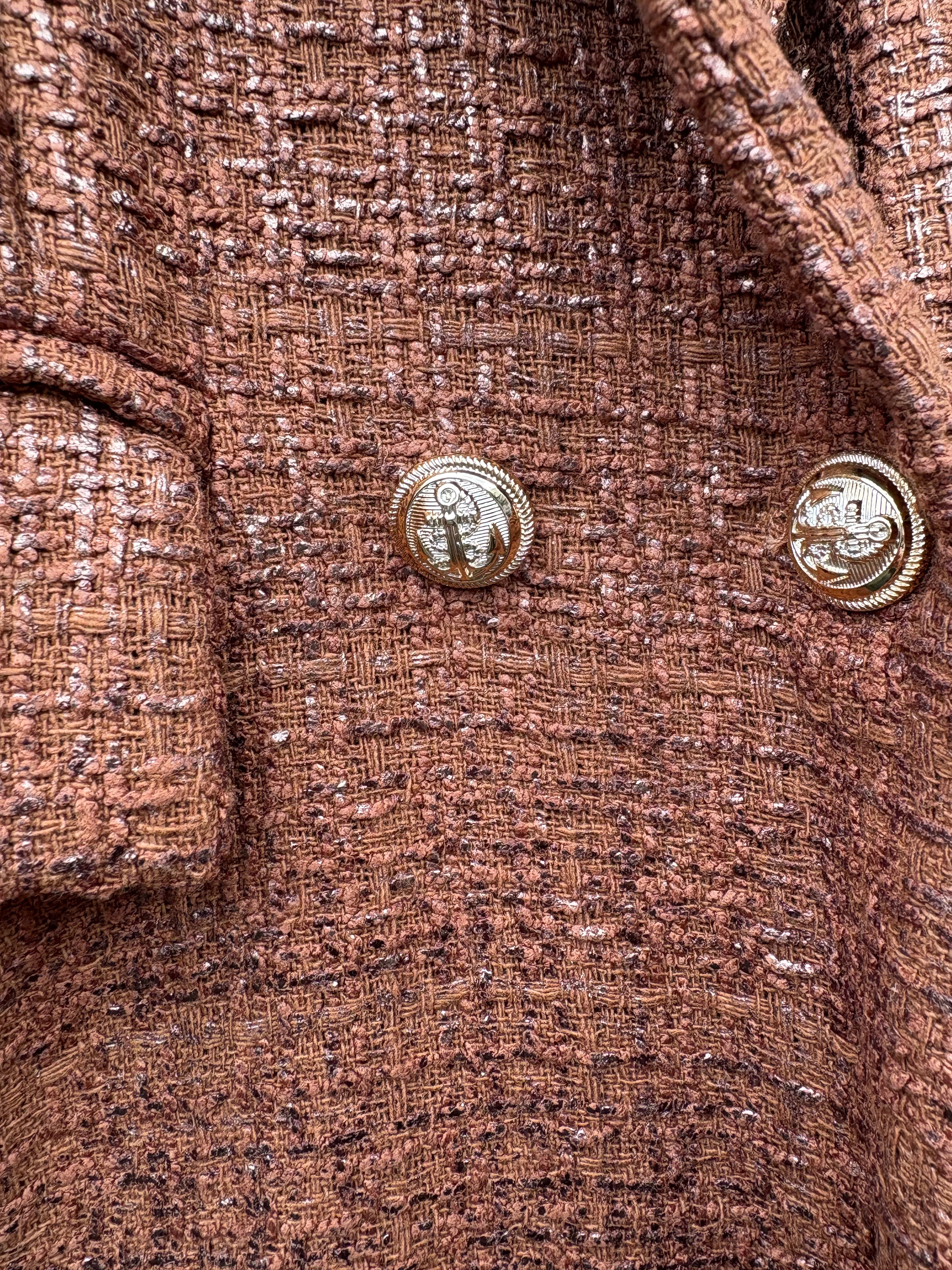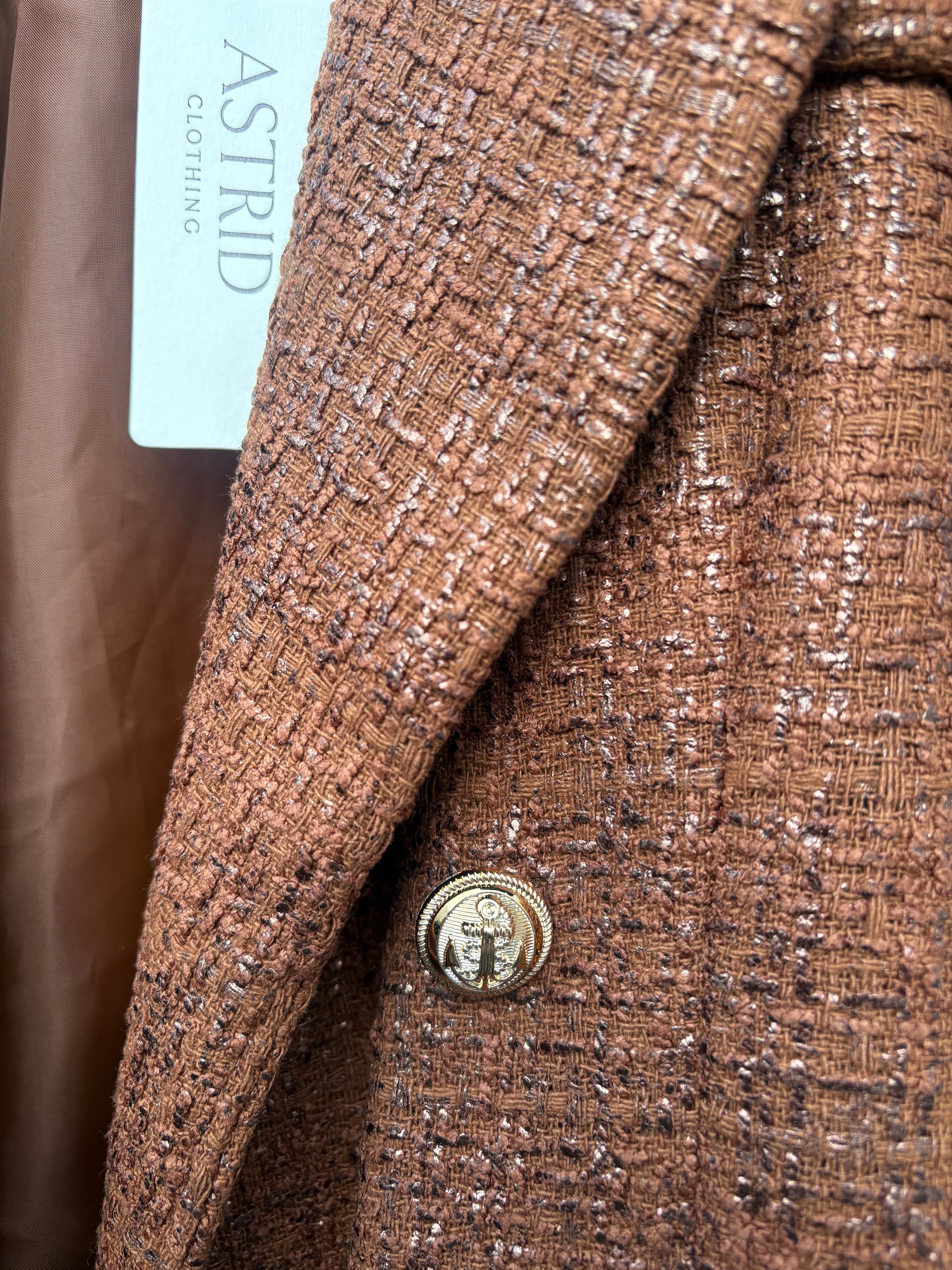 Finish your autumn look in elevated style with the fabulous tweed Presley blazer from Astrid. Gold anchor detailed buttons.