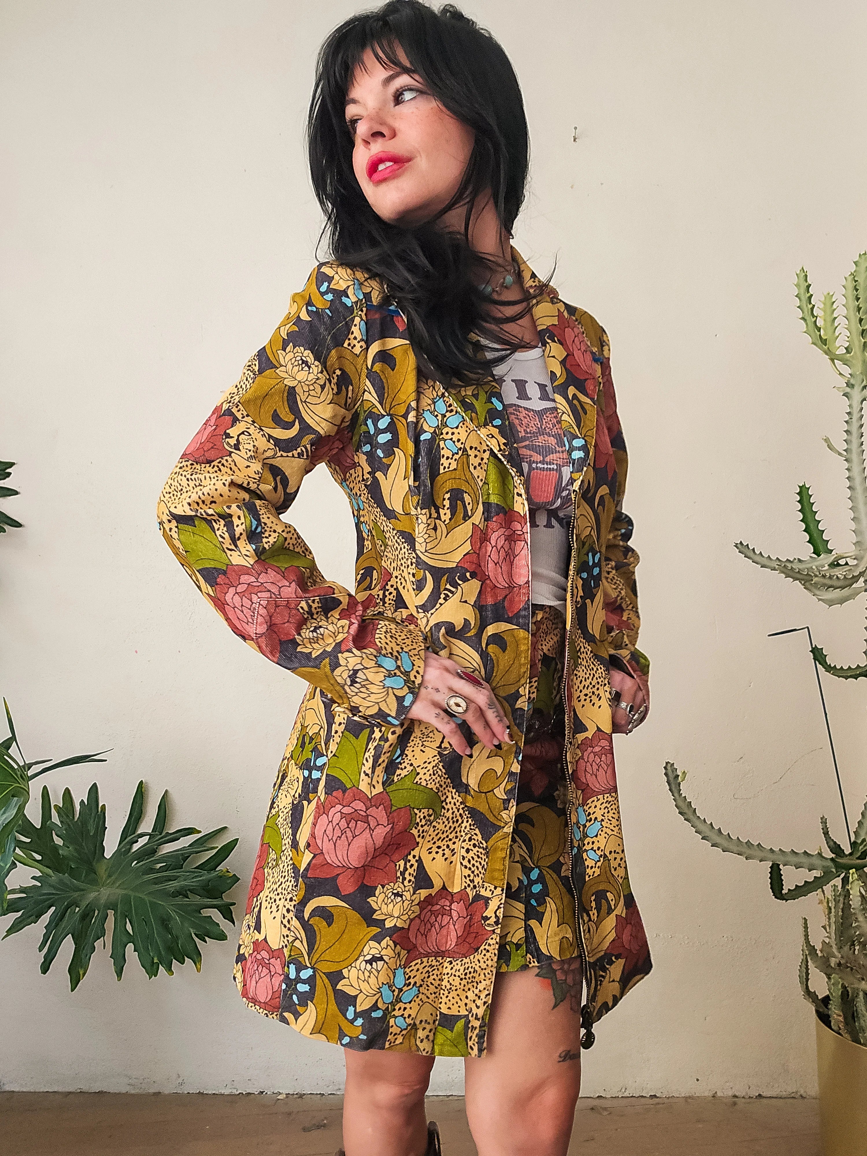 Classic Rock Couture Wild Child Floral Cord Midi Jacket