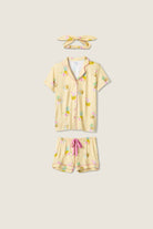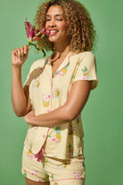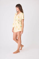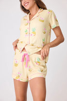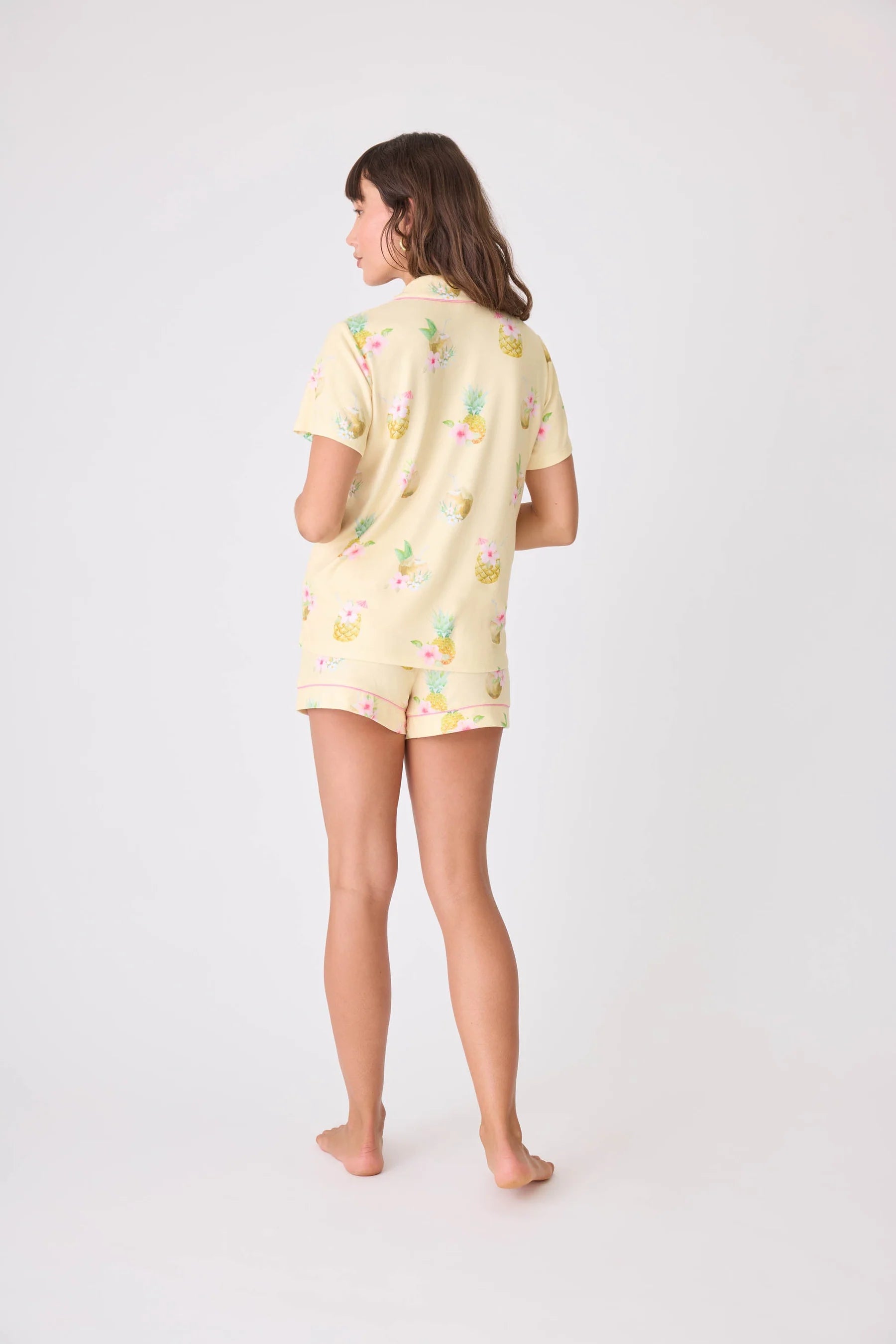 Vacation state of mind, activated. This button-up PJ set is crafted from our butter jersey with a weighty handfeel for a smooth, comfy drape and a hint of stretch. The tropical cocktail and floral print adds playful island vibes, while pink piping and a contrast drawstring deliver a splash of polish. With its relaxed fit and soft feel, it's a sunshine-soaked dream for winding down or waking up slow.