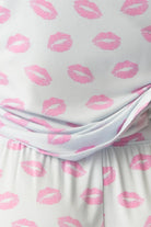 Pucker up your loungewear with this charming blue PJ tank featuring a built-in shelf bra, paired perfectly with tie waist pants adorned in a fun pink kiss pattern! This set is as comfy as it is cute, making it ideal for lazy days at home or catching up on your favorite shows while staying effortlessly stylish.