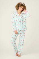 PJ Salvage Ma Cherie Cherry Cosmo Print 3-Piece Flannel PJ Set- Light Mint