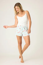 PJ Salvage Ma Cherie Cherry Cosmo Print Flannel Shorts- Light Mint