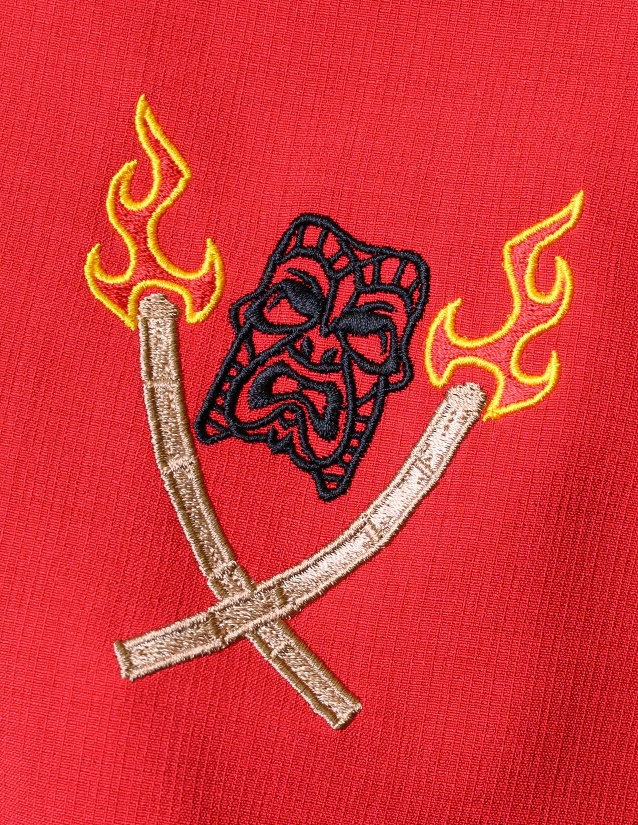 Unleash your wild side with our Tropical Itch Bowling Shirt. Featuring Tiki buttons and a sizzling Tiki torch embroidery, this black and red shirt will have you looking fly on and off the lanes. Perfect for Tiki-themed parties or adding a touch of fun to your next bowling night.