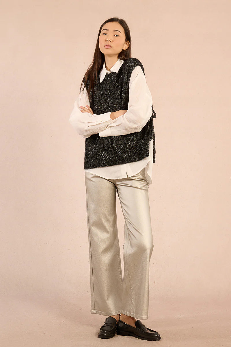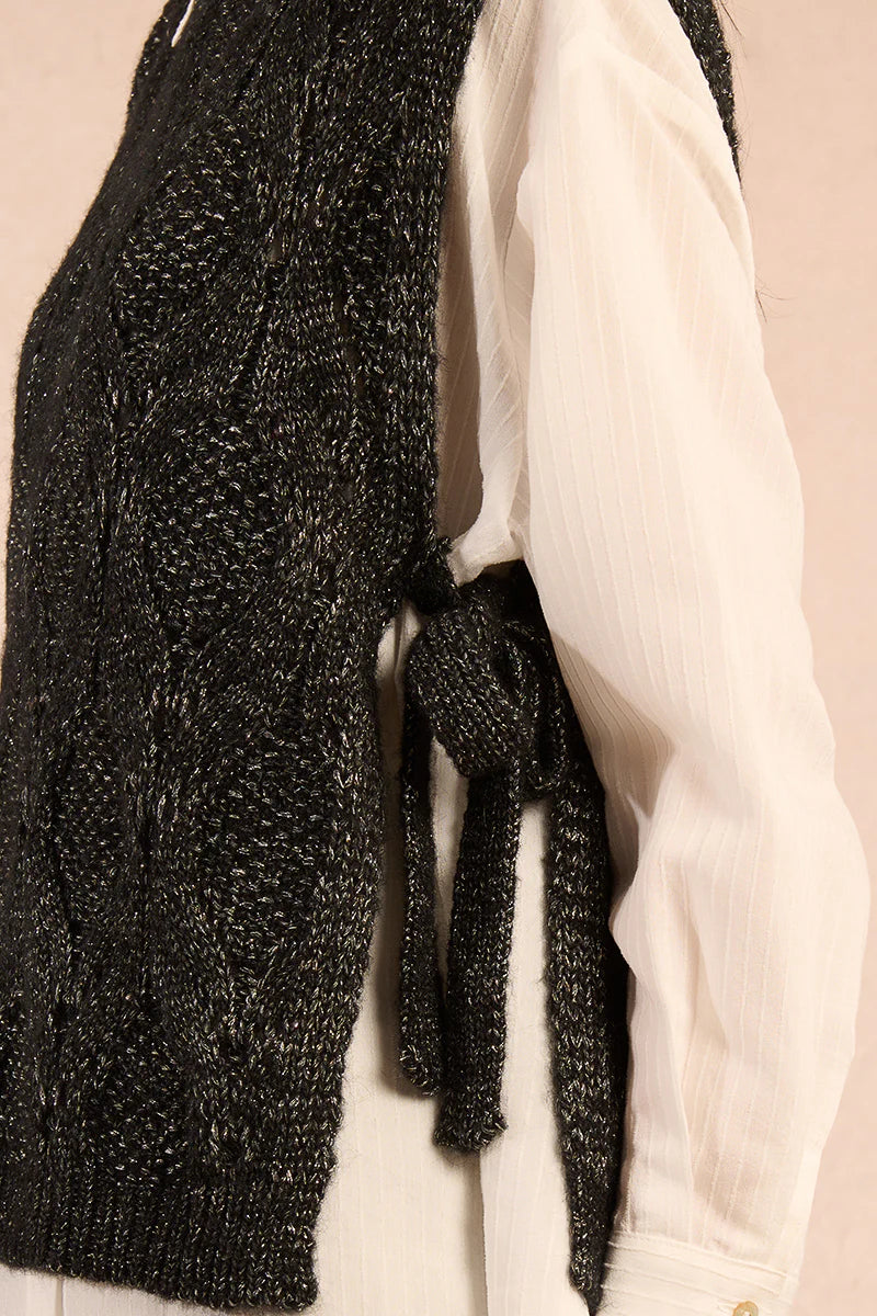 Molly Bracken Open Side Sweater w/ Tie- Black