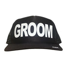 GROOM on the front panel of a classic mesh trucker cap, comfortable terry cloth inner band, fitted with an adjustable snapback.