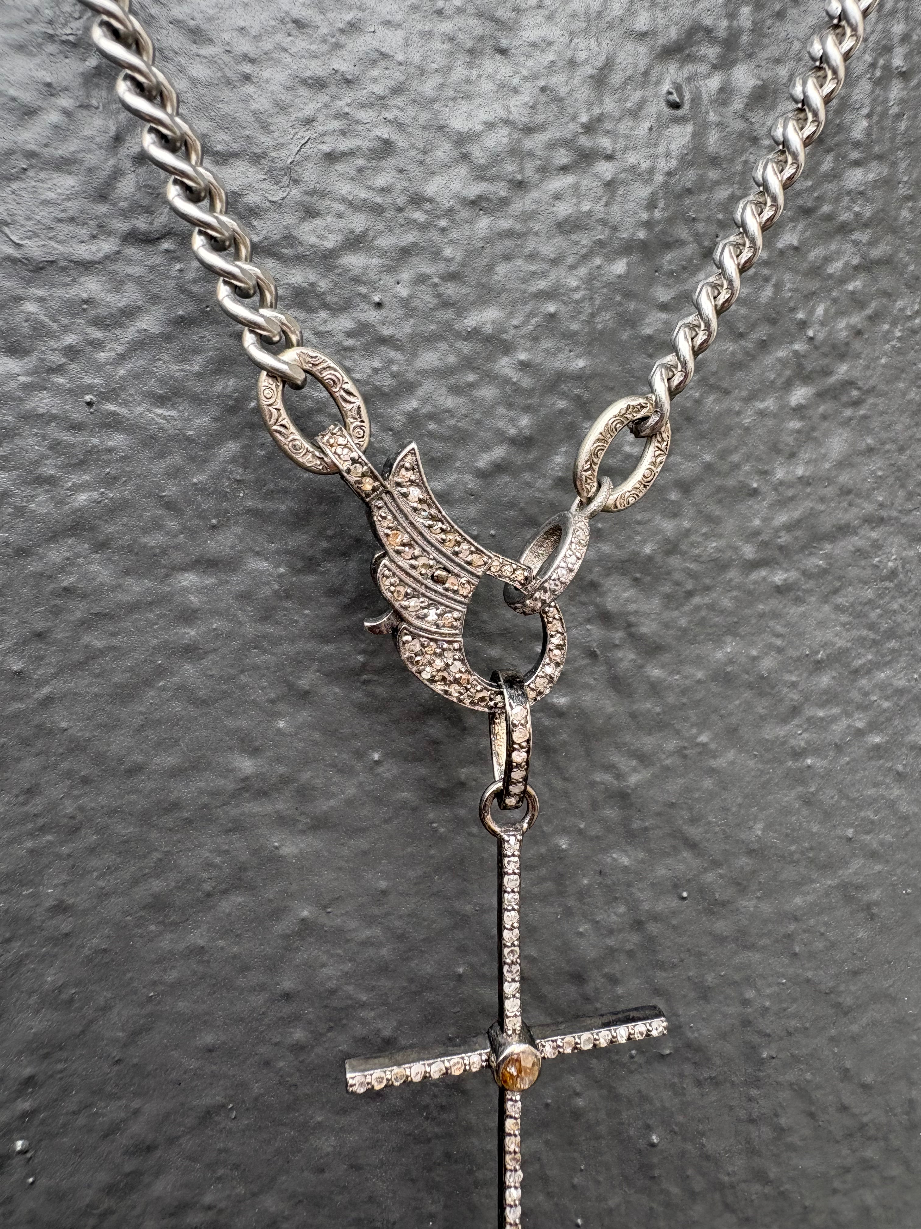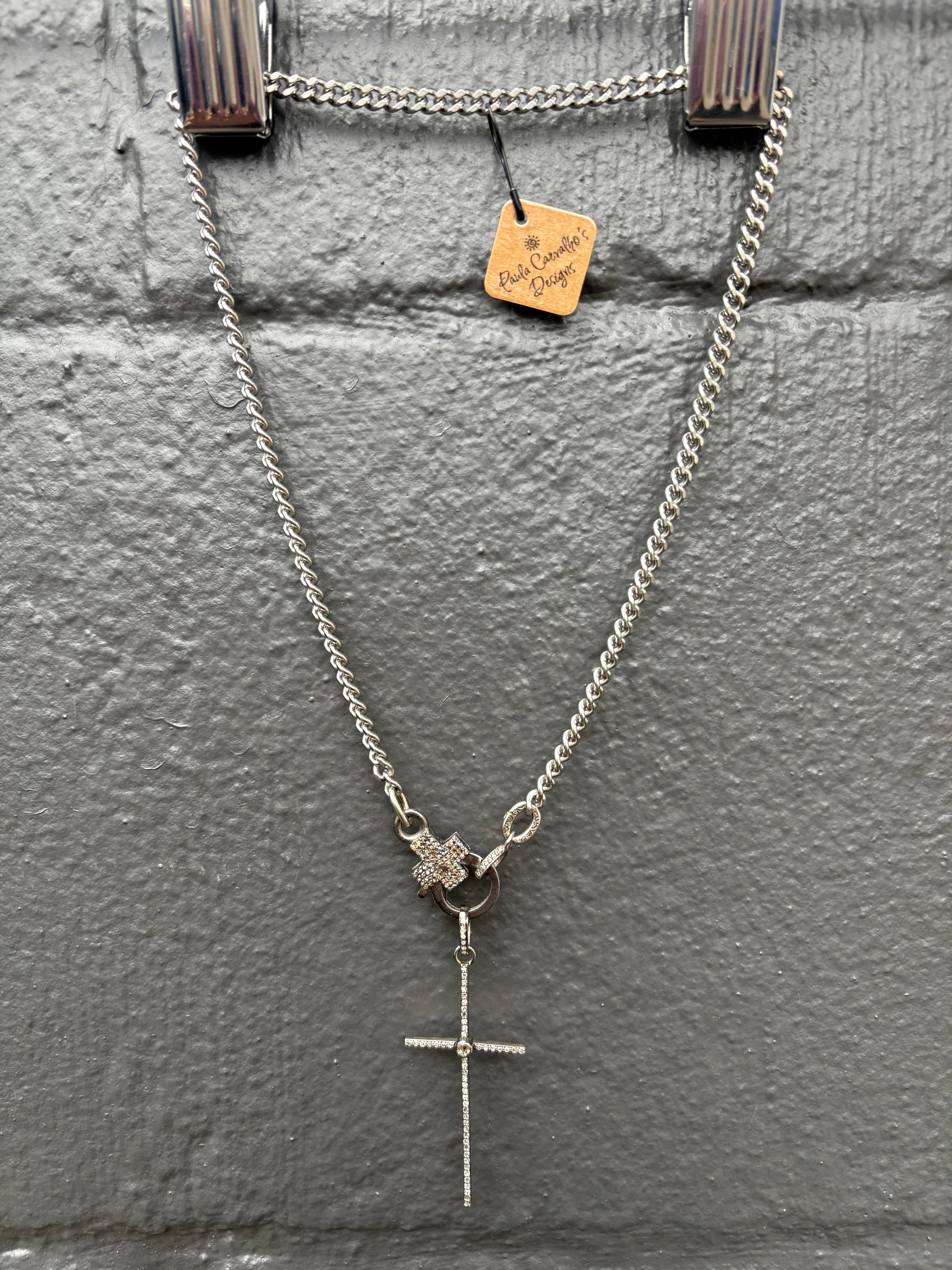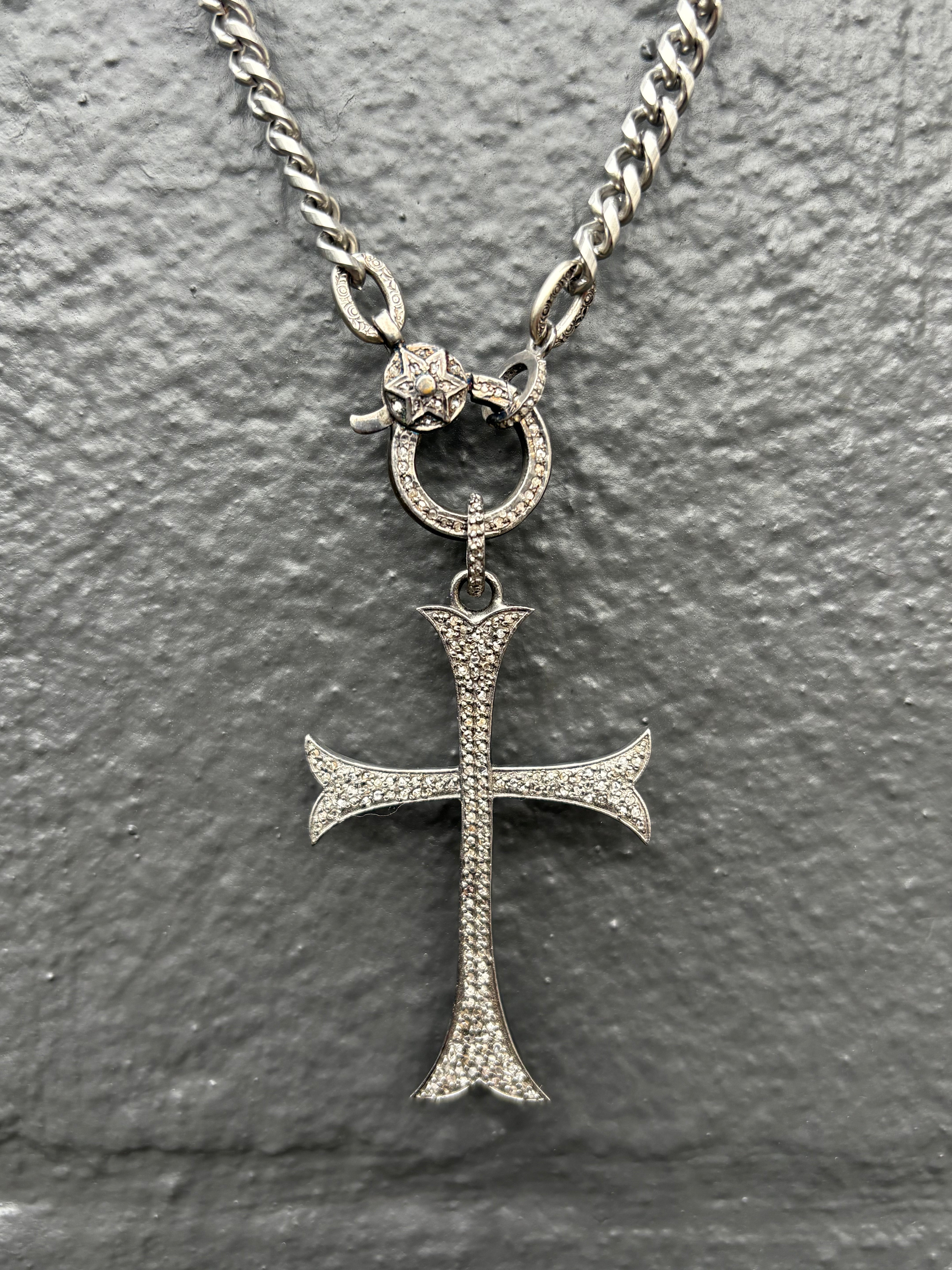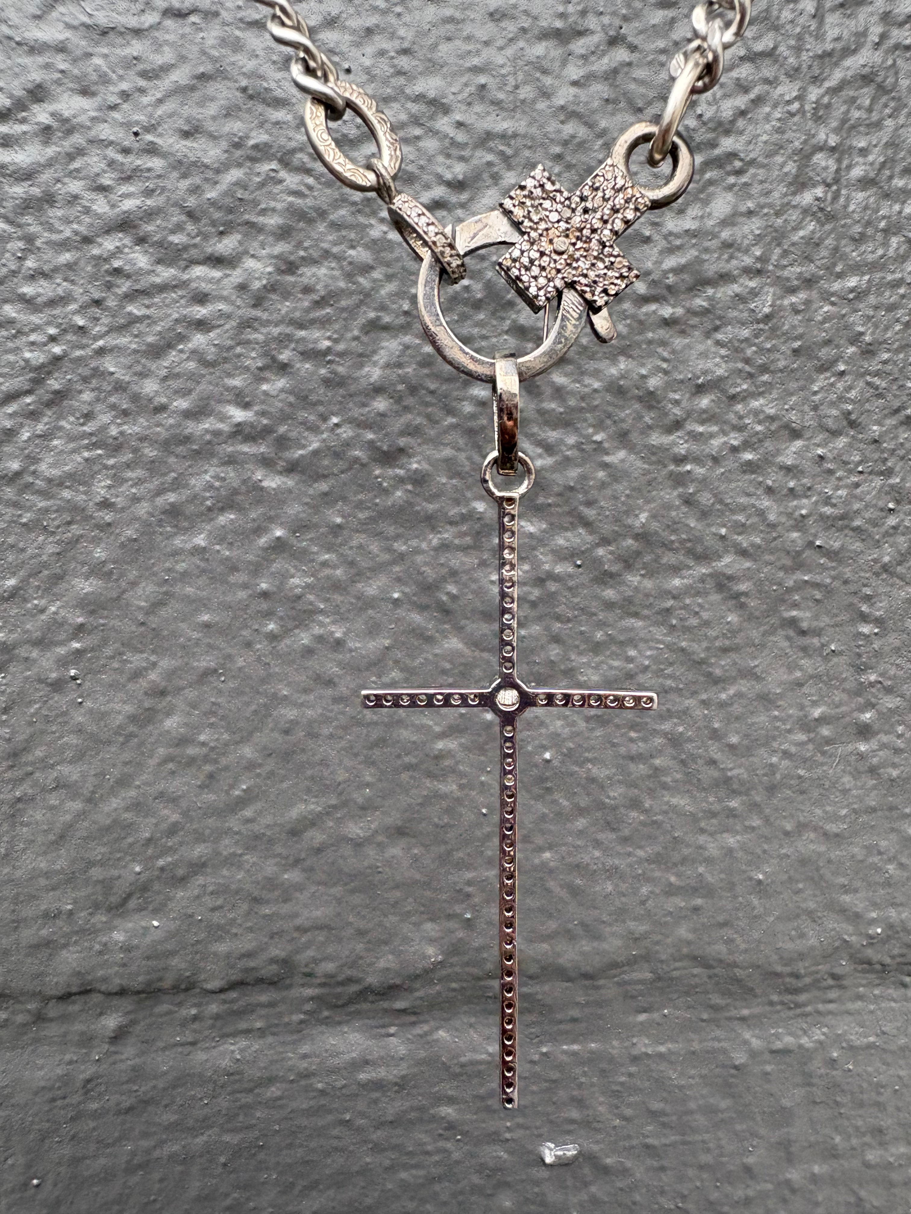 Paula Carvalho Thin Pave Diamond Cross w/ Pave Cross Clasp #117