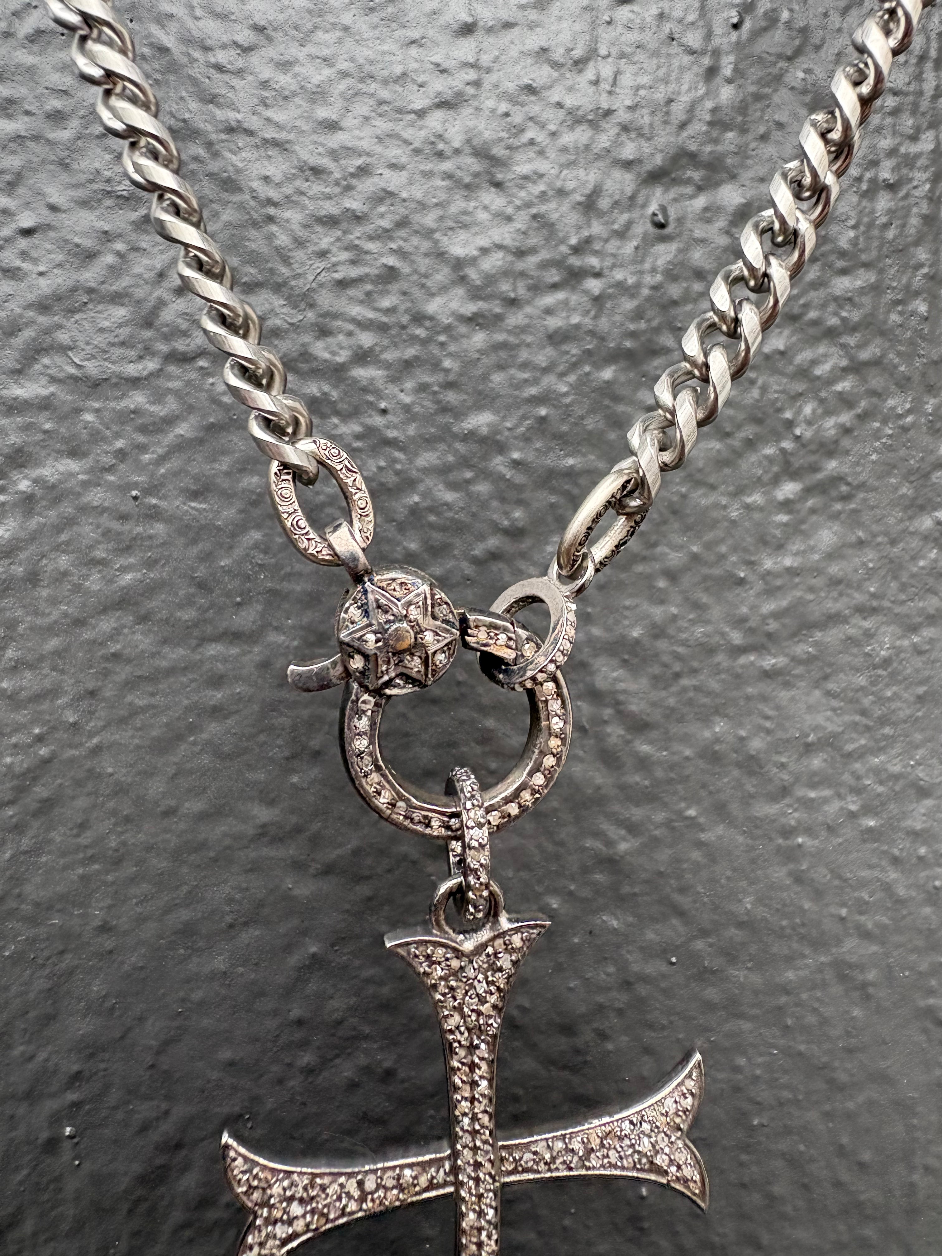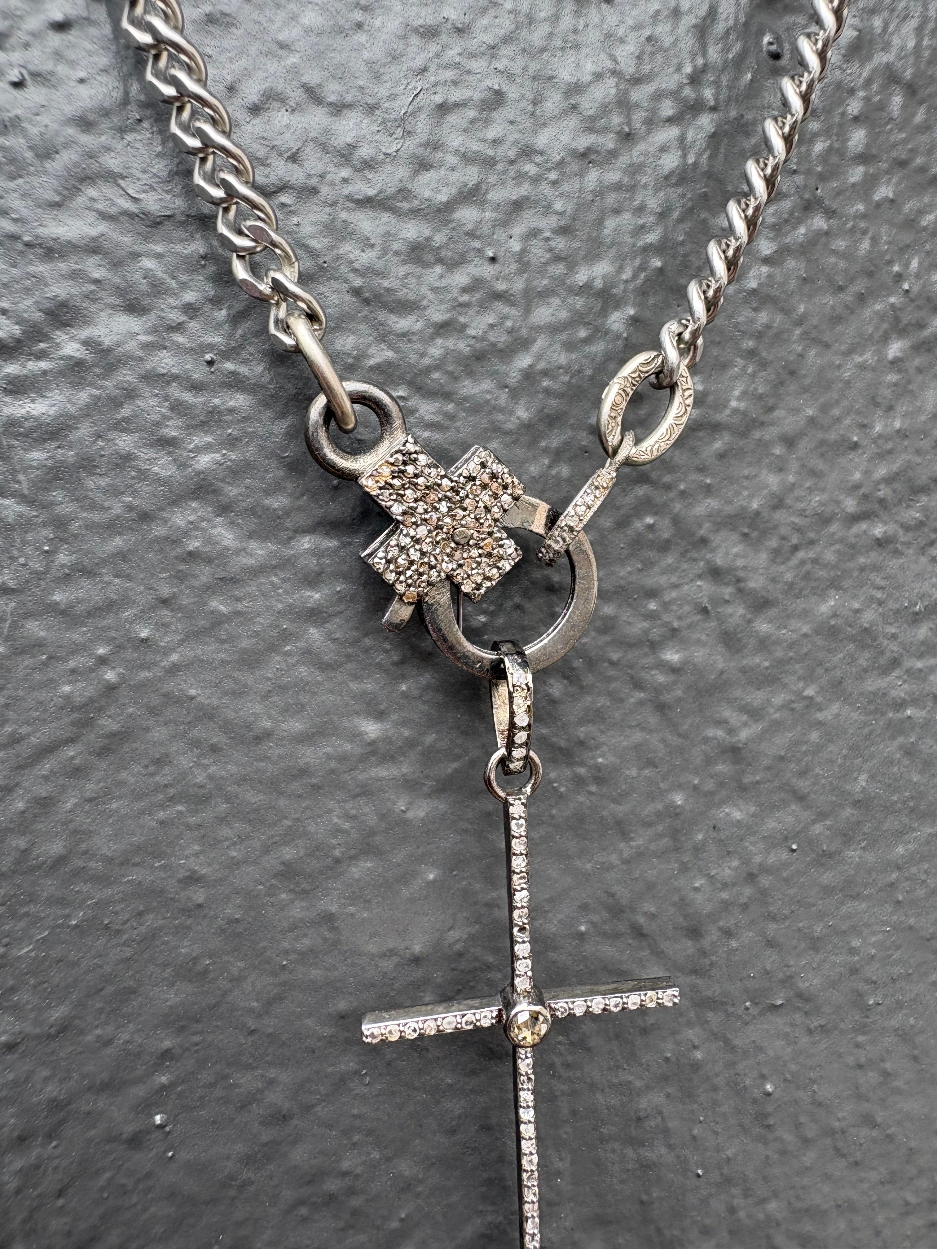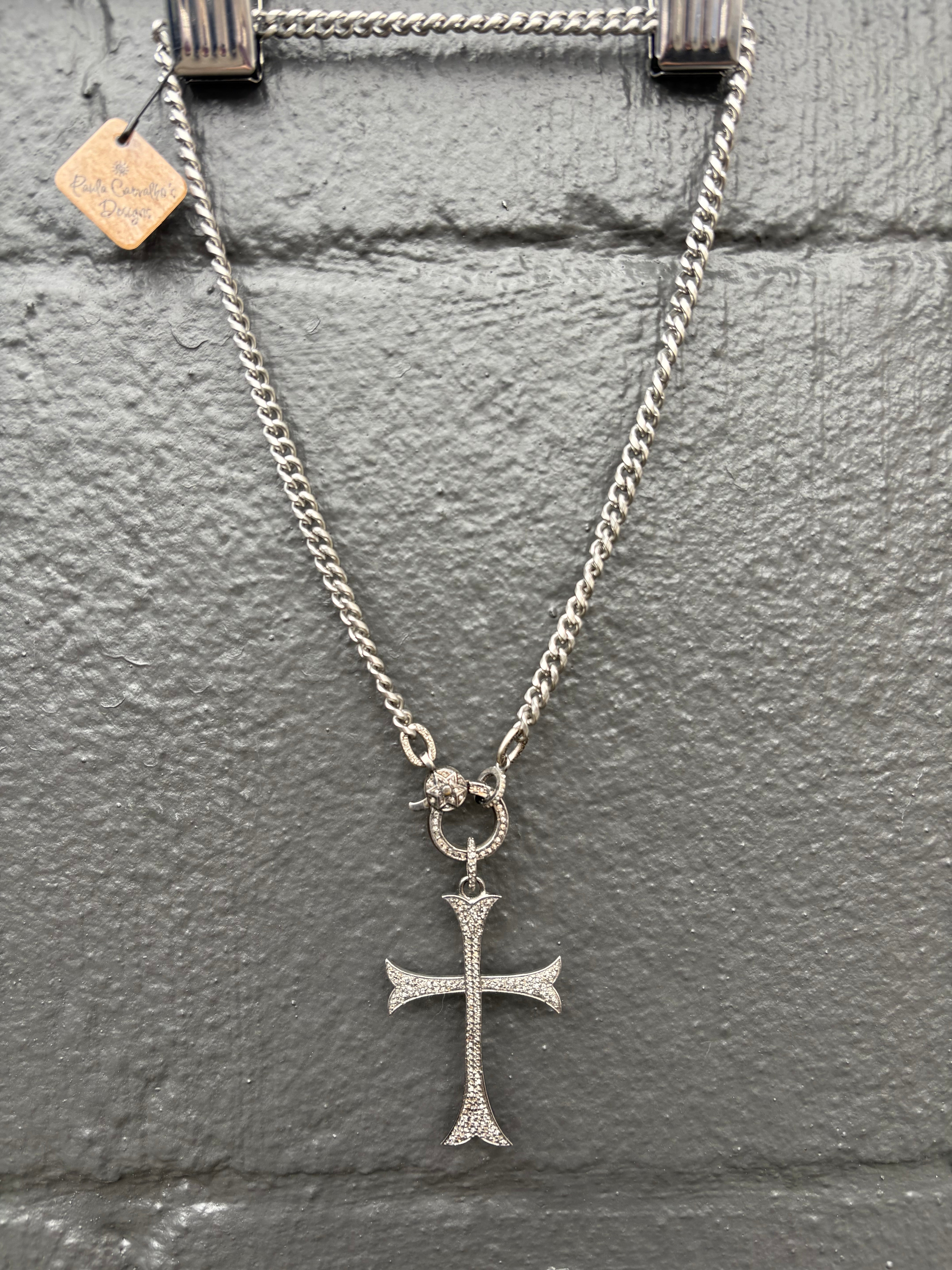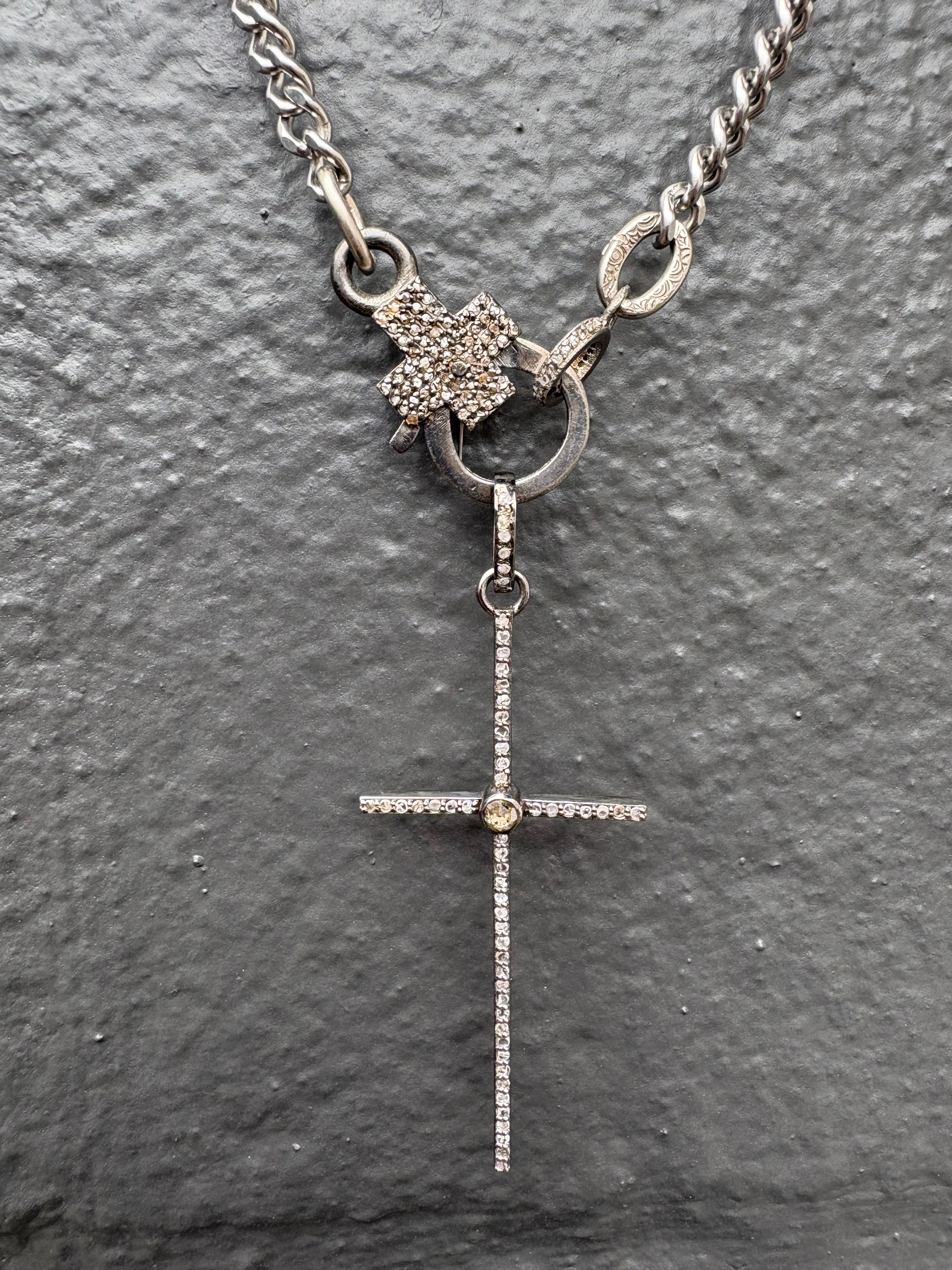 Paula Carvalho Thin Pave Diamond Cross w/ Pave Cross Clasp #117