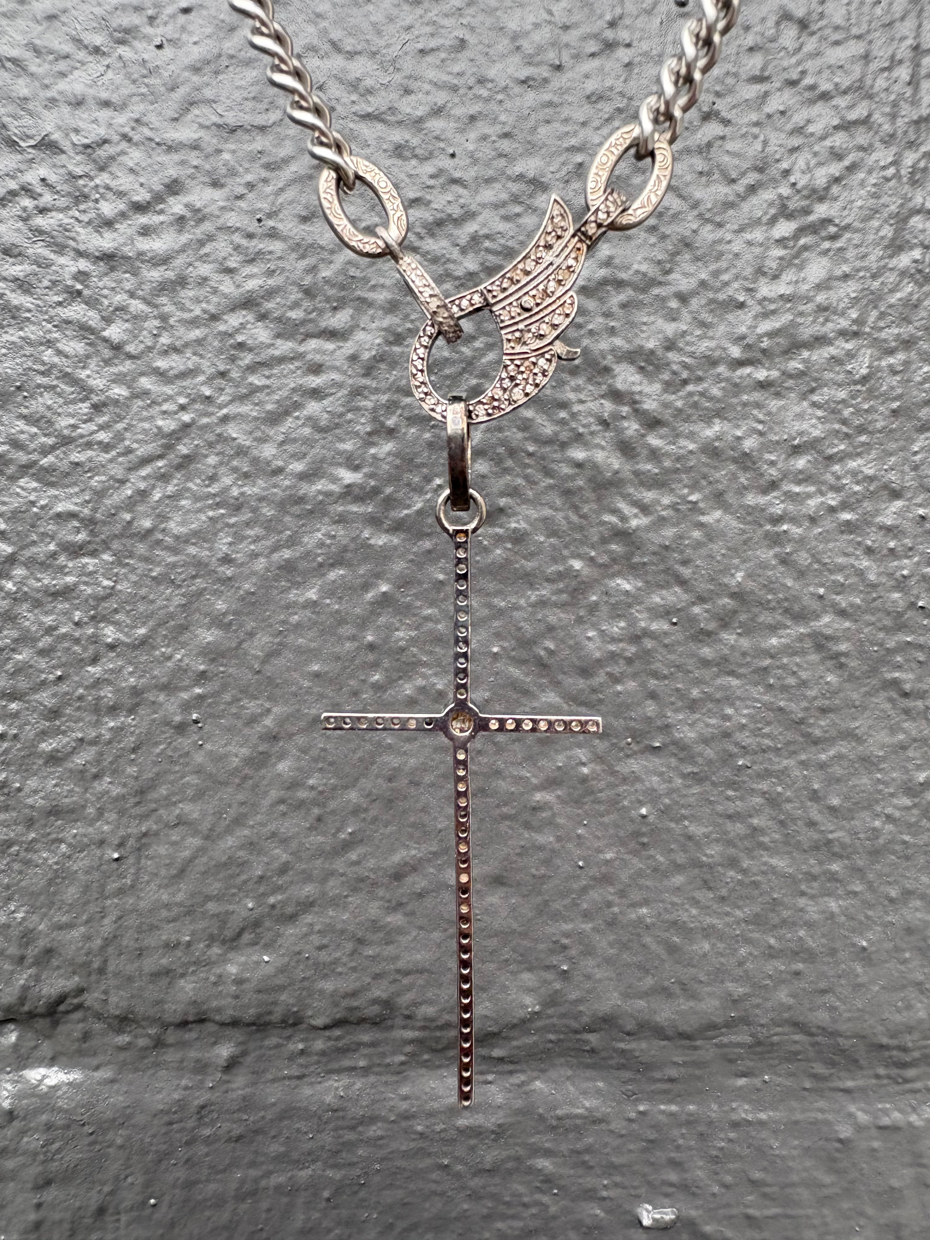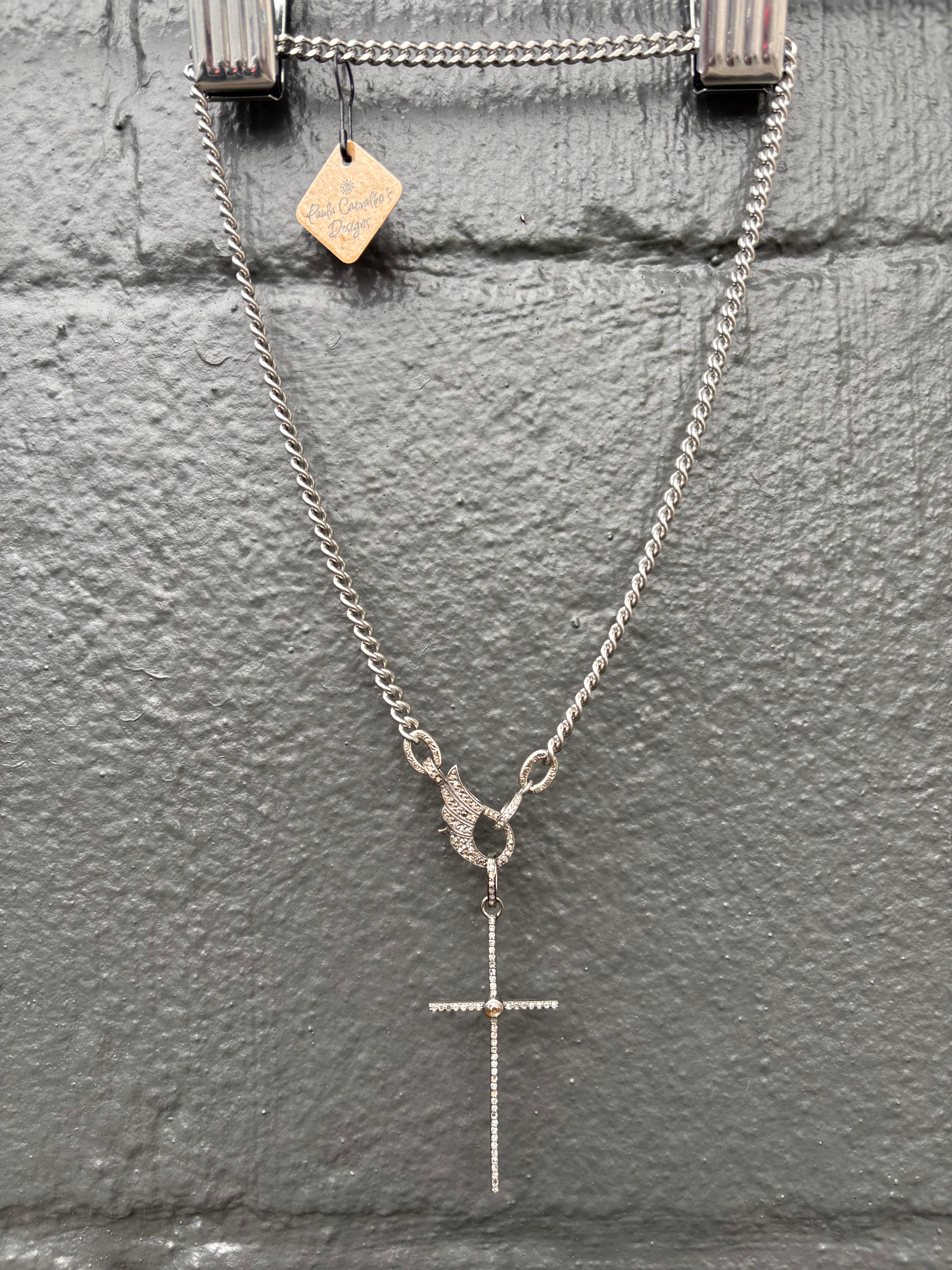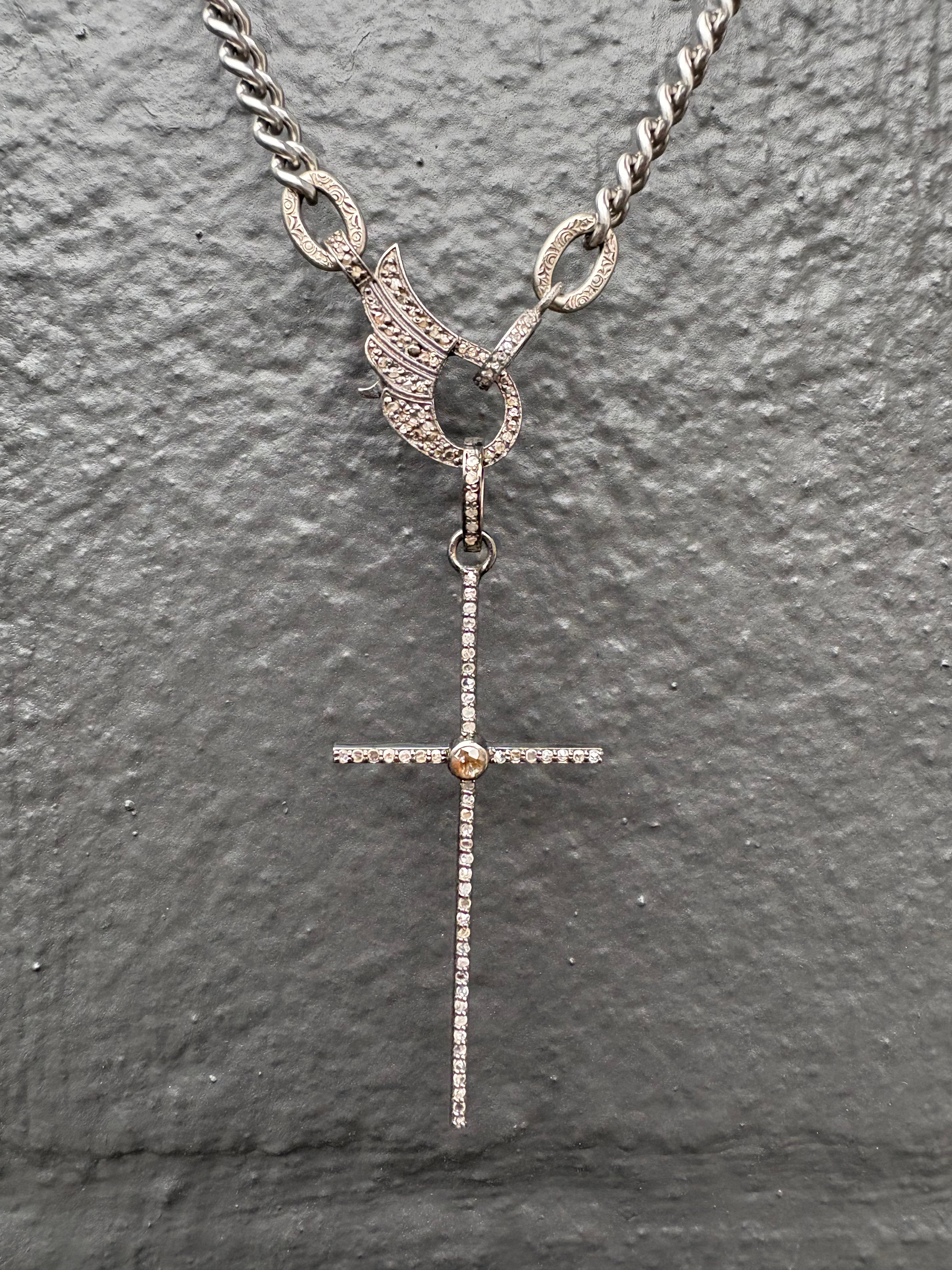 Paula Carvalho Thin Pave Diamond Cross w/ Pave Wing Clasp #115