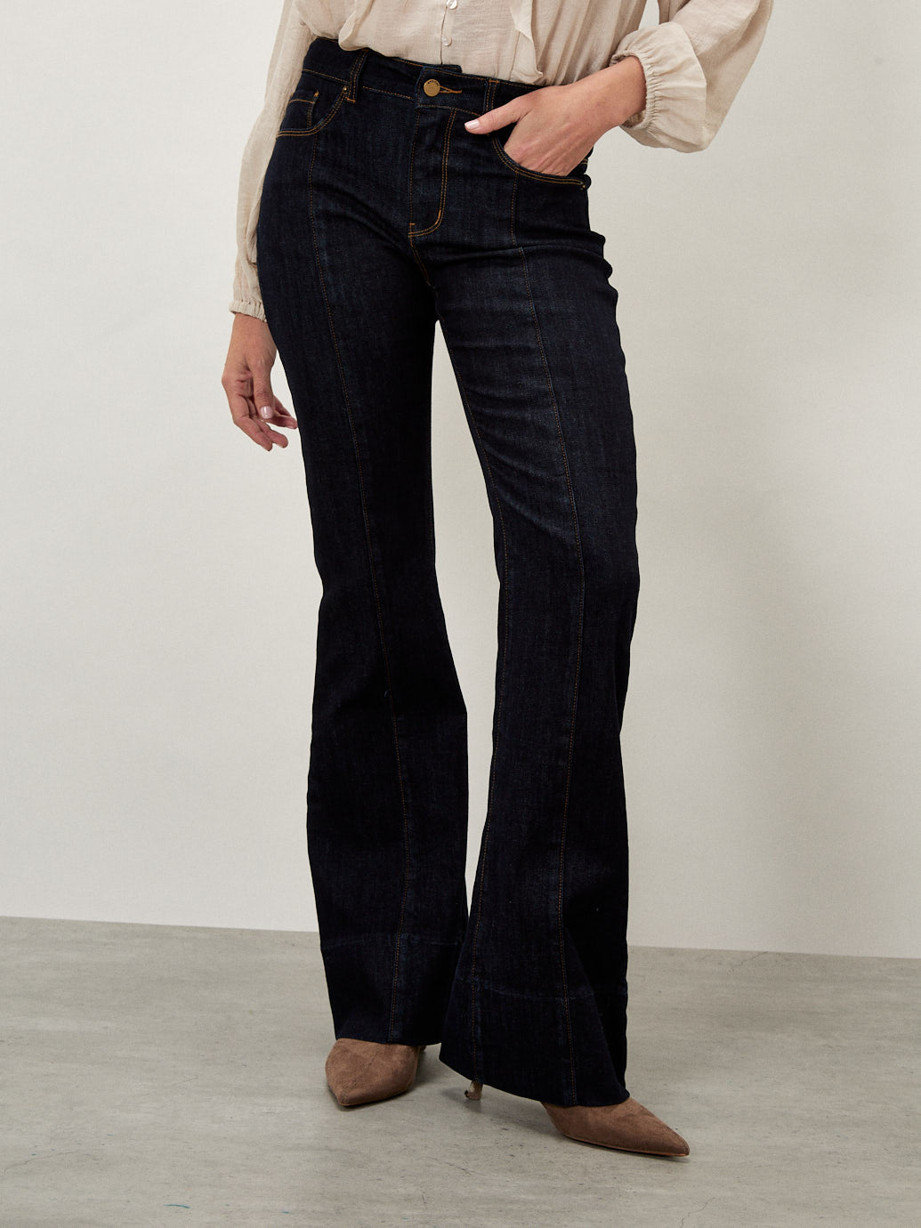 Apricot Lisa Seam Front Clean Flare Jean- Dark Blue