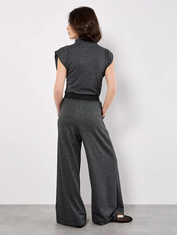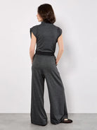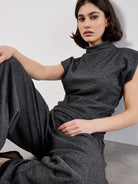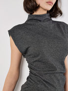 Apricot Mini Dogtooth High Neck Ruched Top- Dark Grey/Charcoal