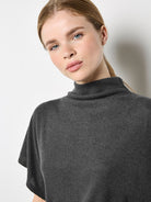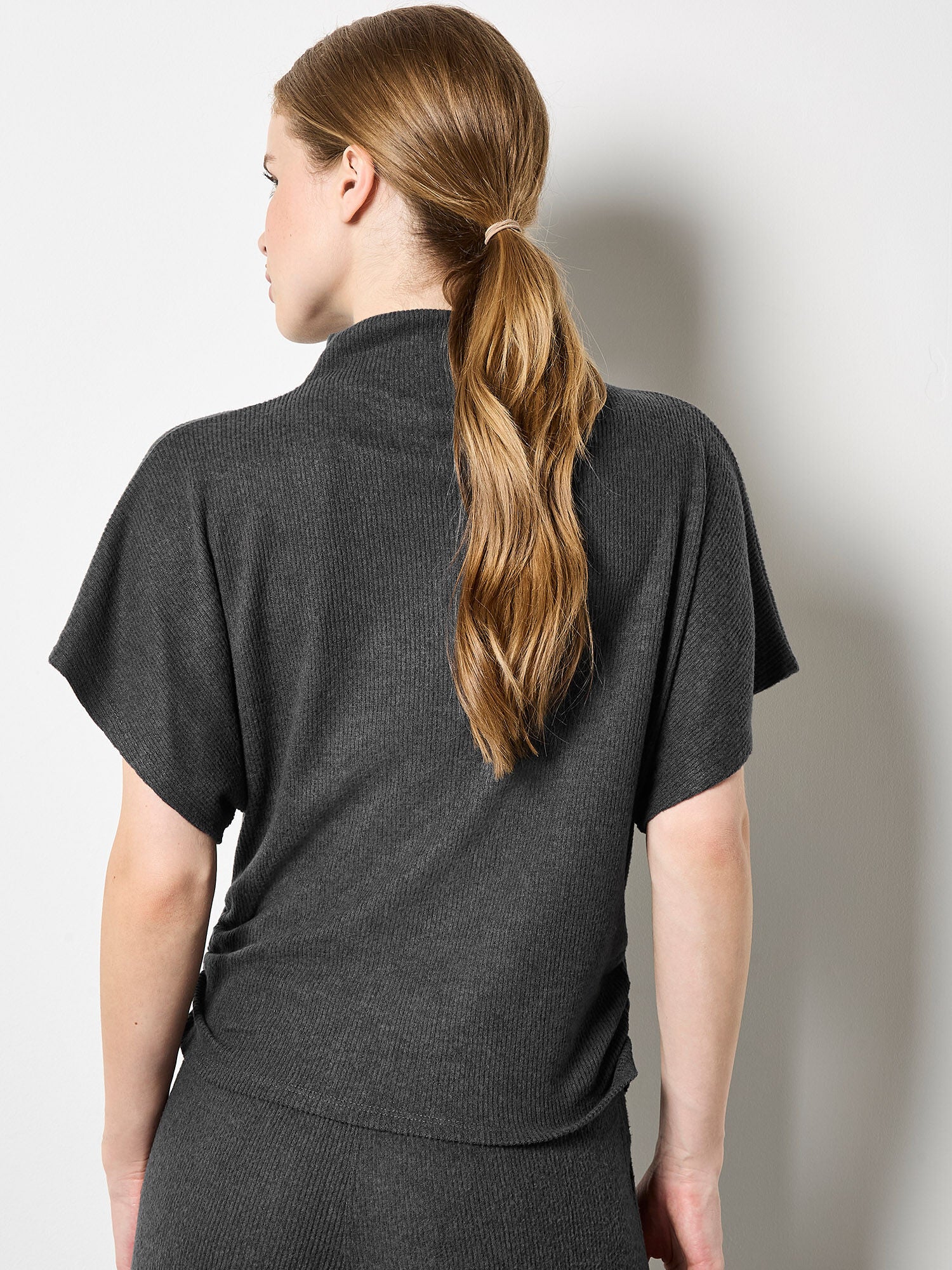 This this relaxed fit top is a cozy and casual option for the weekend! Framed by a mock neck and short batwing sleeves, it's finished with ruched sides to create a flattering silhouette. Color: Dark Grey - Charcoal