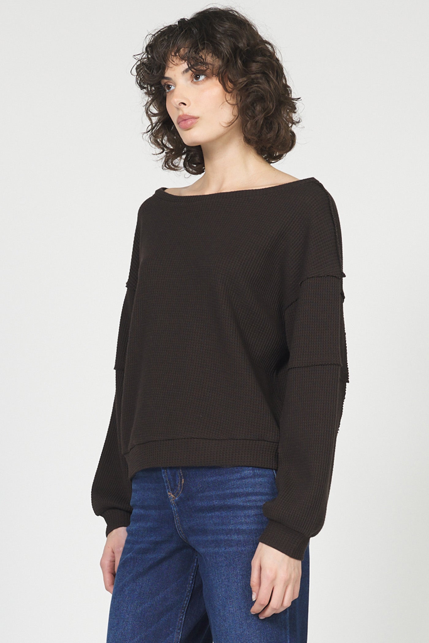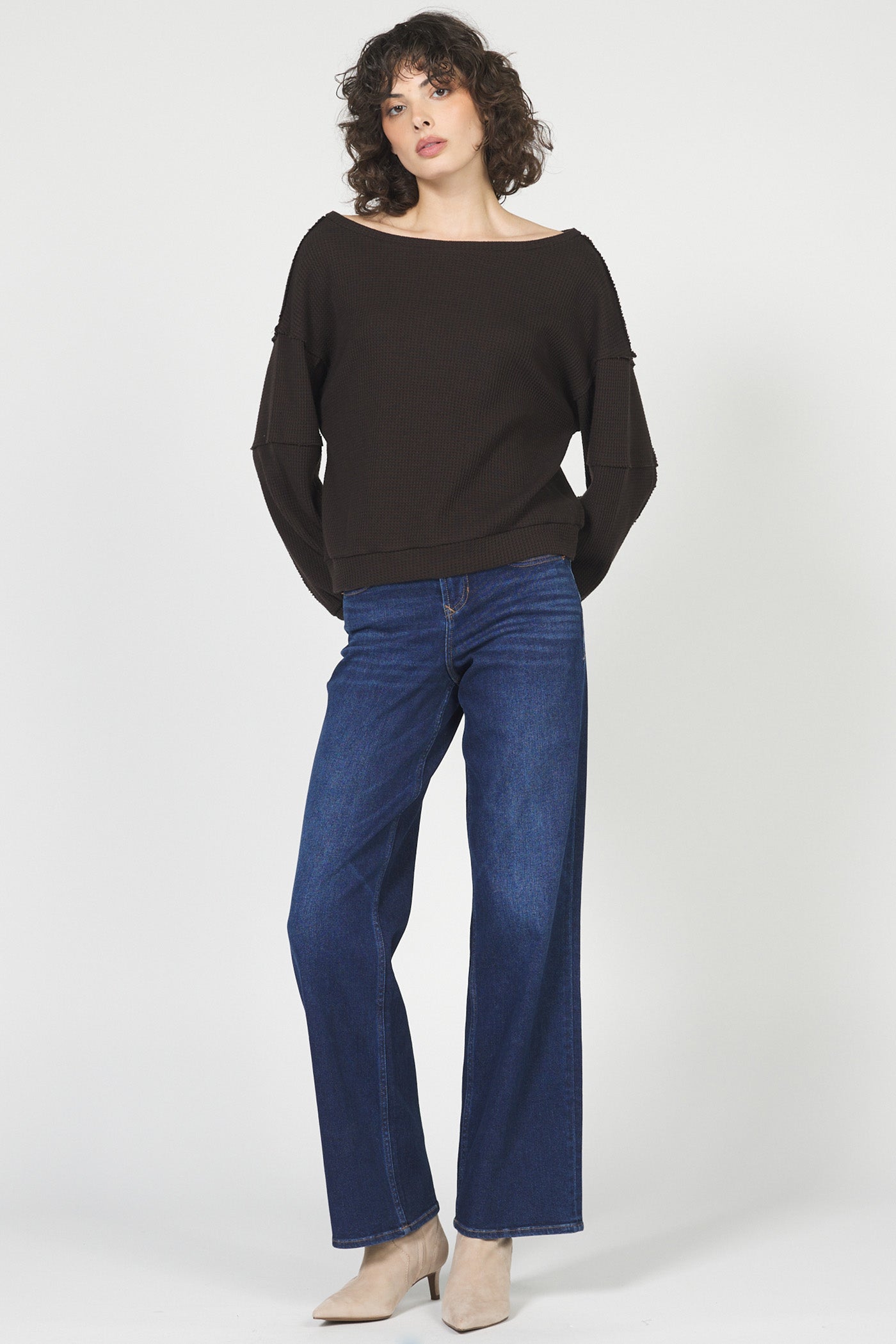 Dear John Martella Long Sleeve Thermal Cotton Top- Chocolate Torte