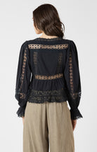 Dex Mixed Fabric Lace Trim Top- Black