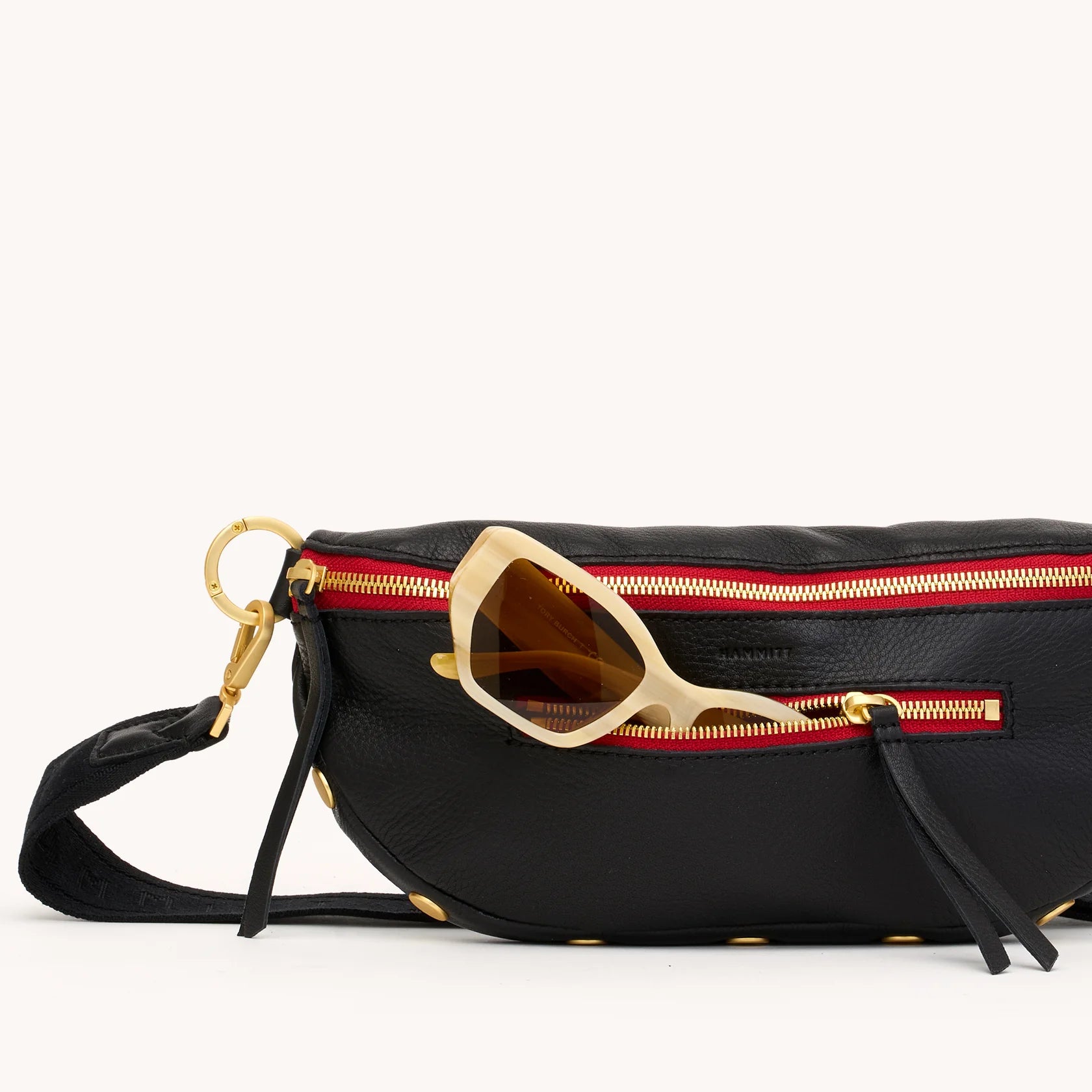 Hammitt Charles Crossbody Medium- Black/Brushed Gold/Red Zipper