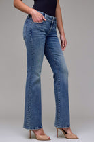 These Hidden Ryan bootcut jeans are your ticket to effortless cool. The low-rise cut pairs perfectly with crop tops and oversized tees, while the vintage wash adds that coveted lived-in vibe. Stretch fabric moves with you all day—no stiffness, just comfort.