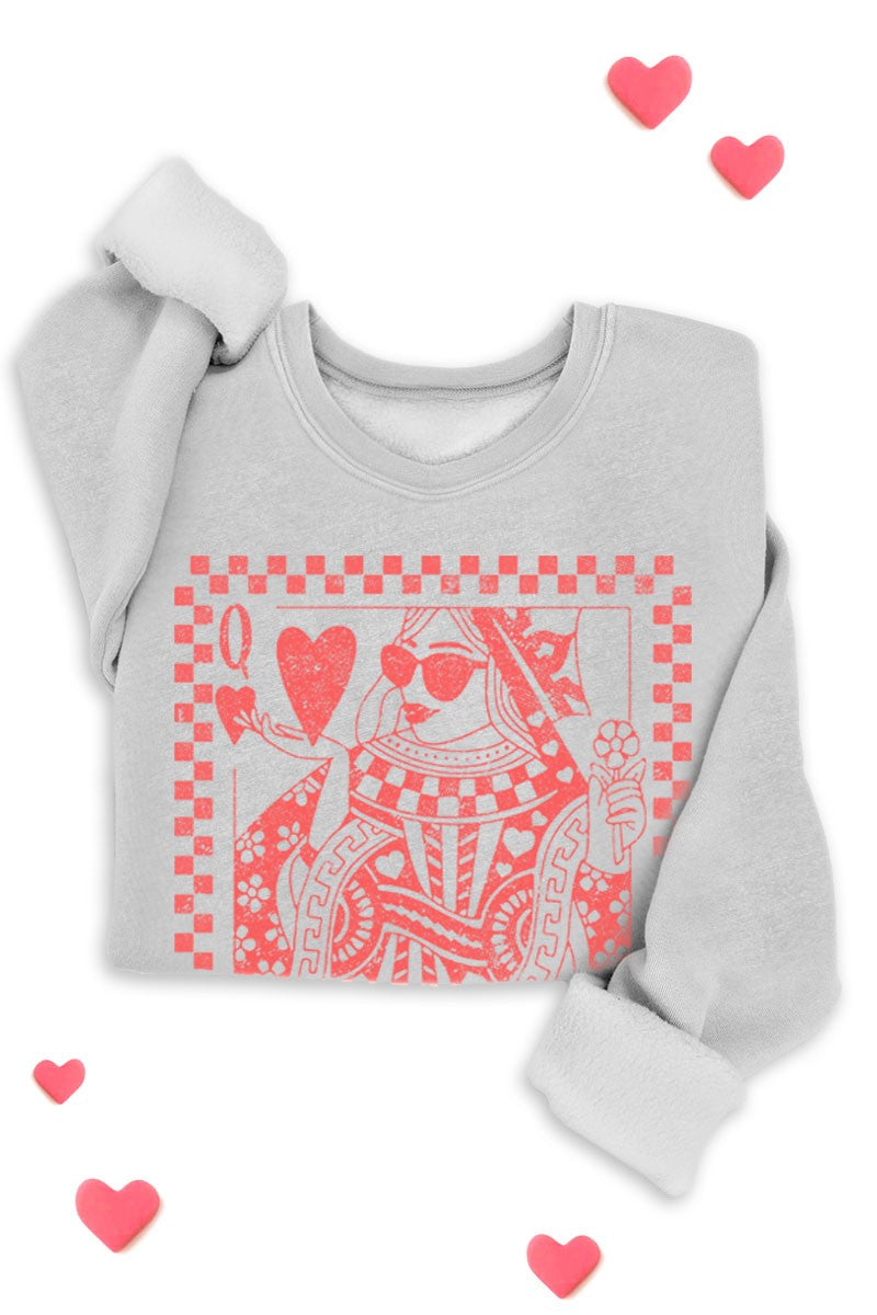 HRT & LUV Queen Of Heart Graphic Sweatshirt- Soft Grey