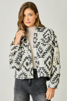 Mystree Aztec Fringe Shacket- Ivory Mix