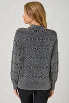 Mystree Cutout Mock Neck Sweater Top- Washed Black