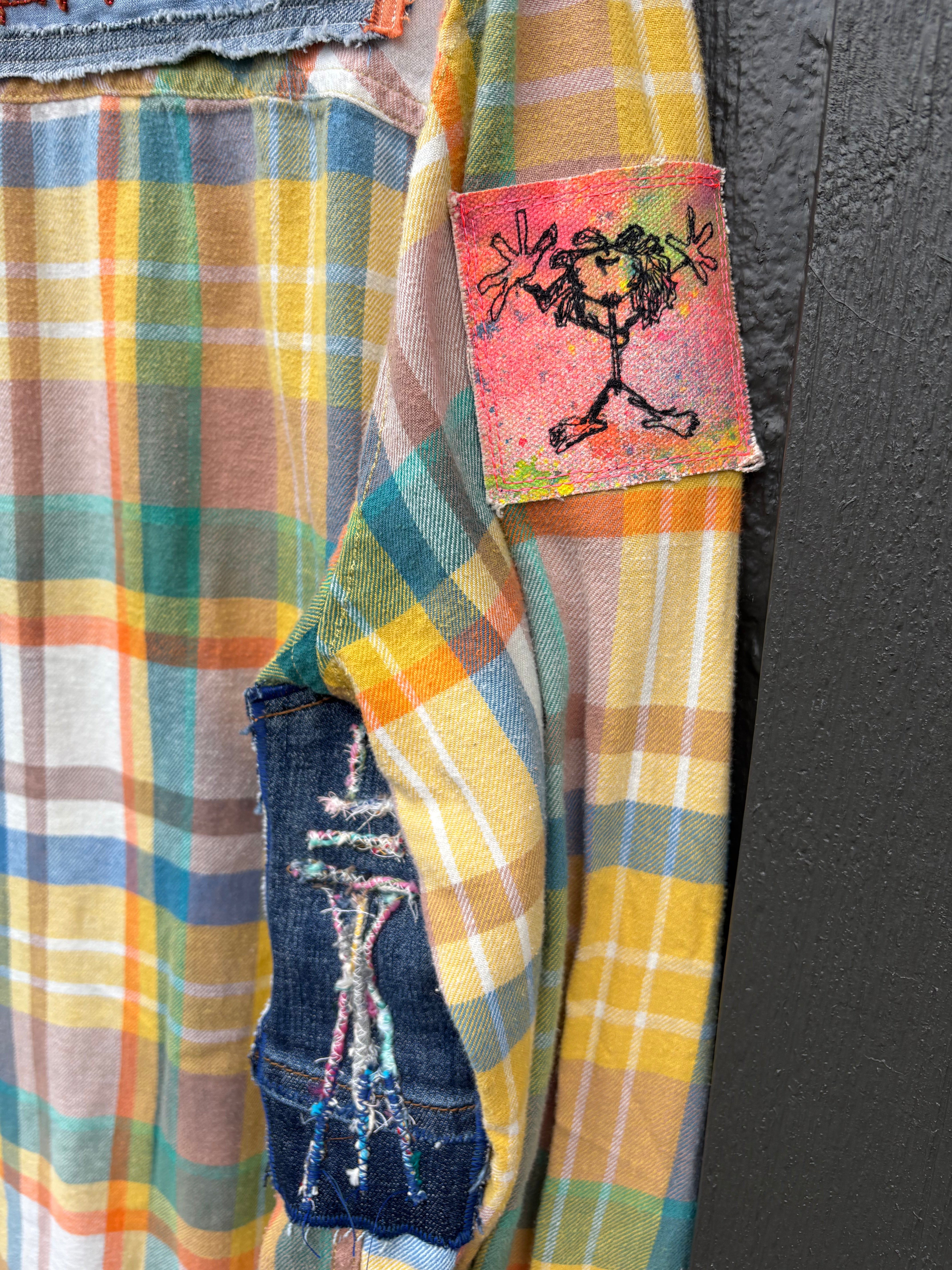 Each Boyfriend Shirt is one of a kind, men's sizes because we have found that men's shirts are durable and when we do our stitching, men's fabric holds it better.