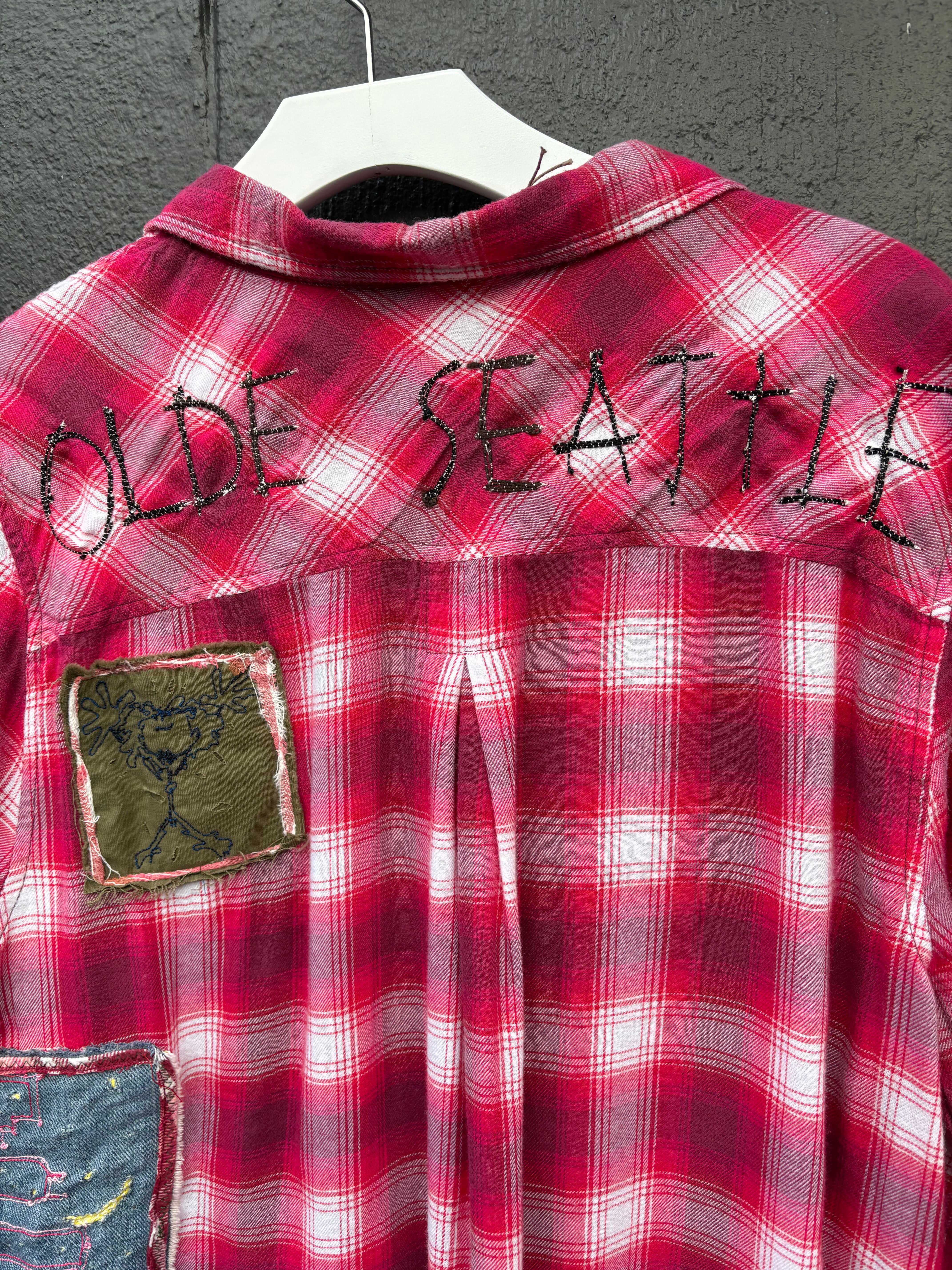 Blink Blink #30 Olde Seattle Custom Button Up Shirt- Magenta/Pink/Cream