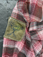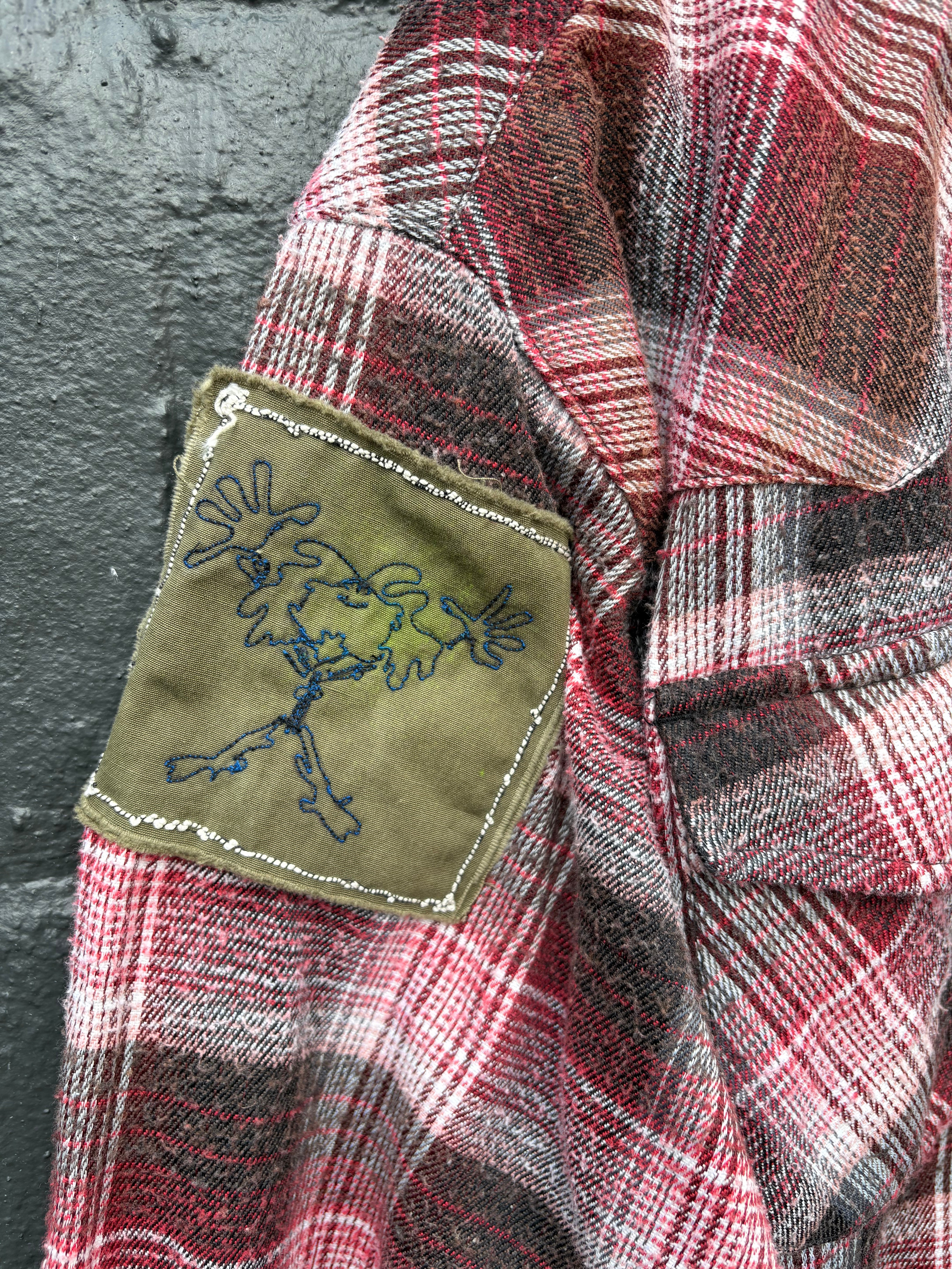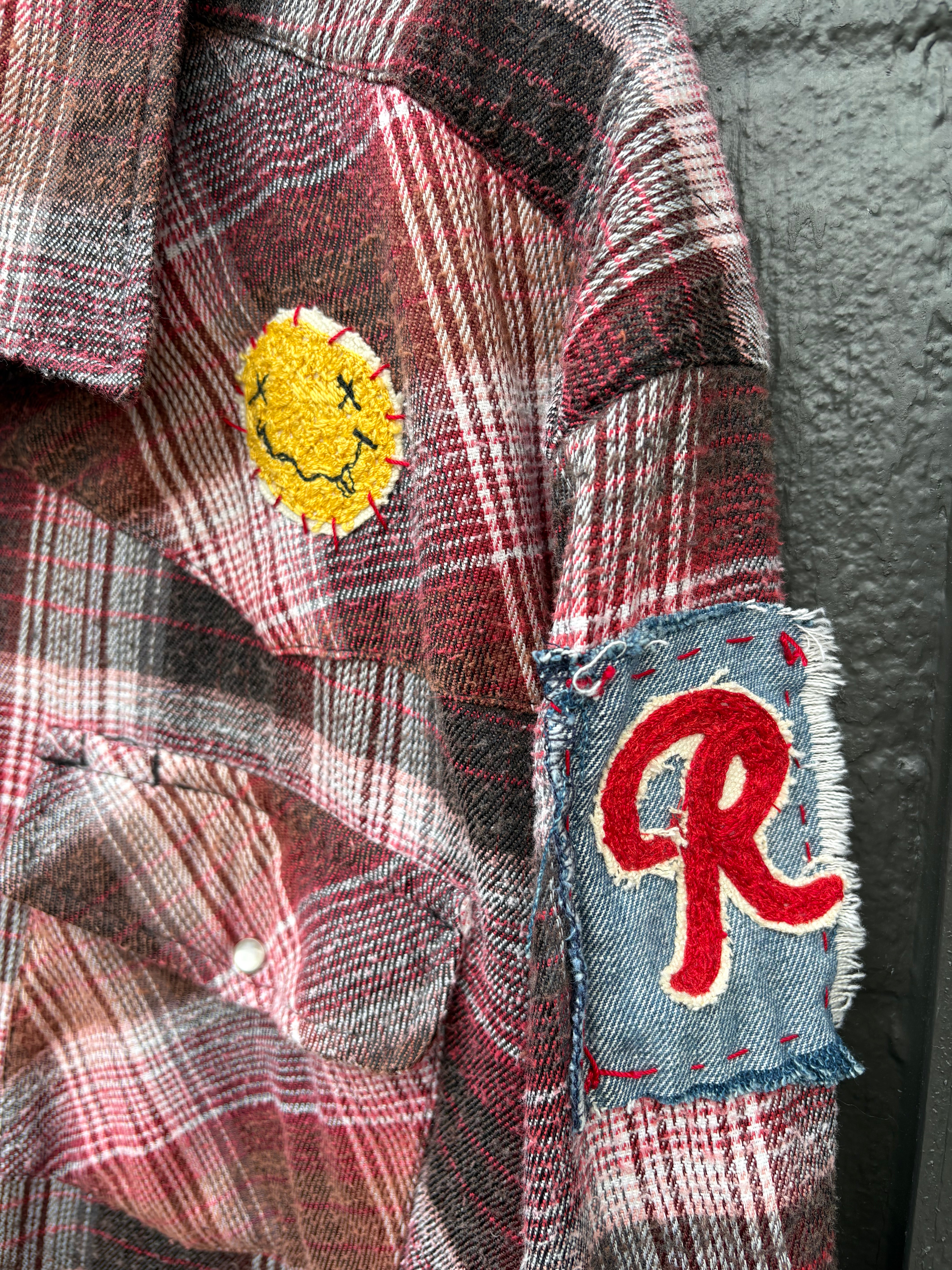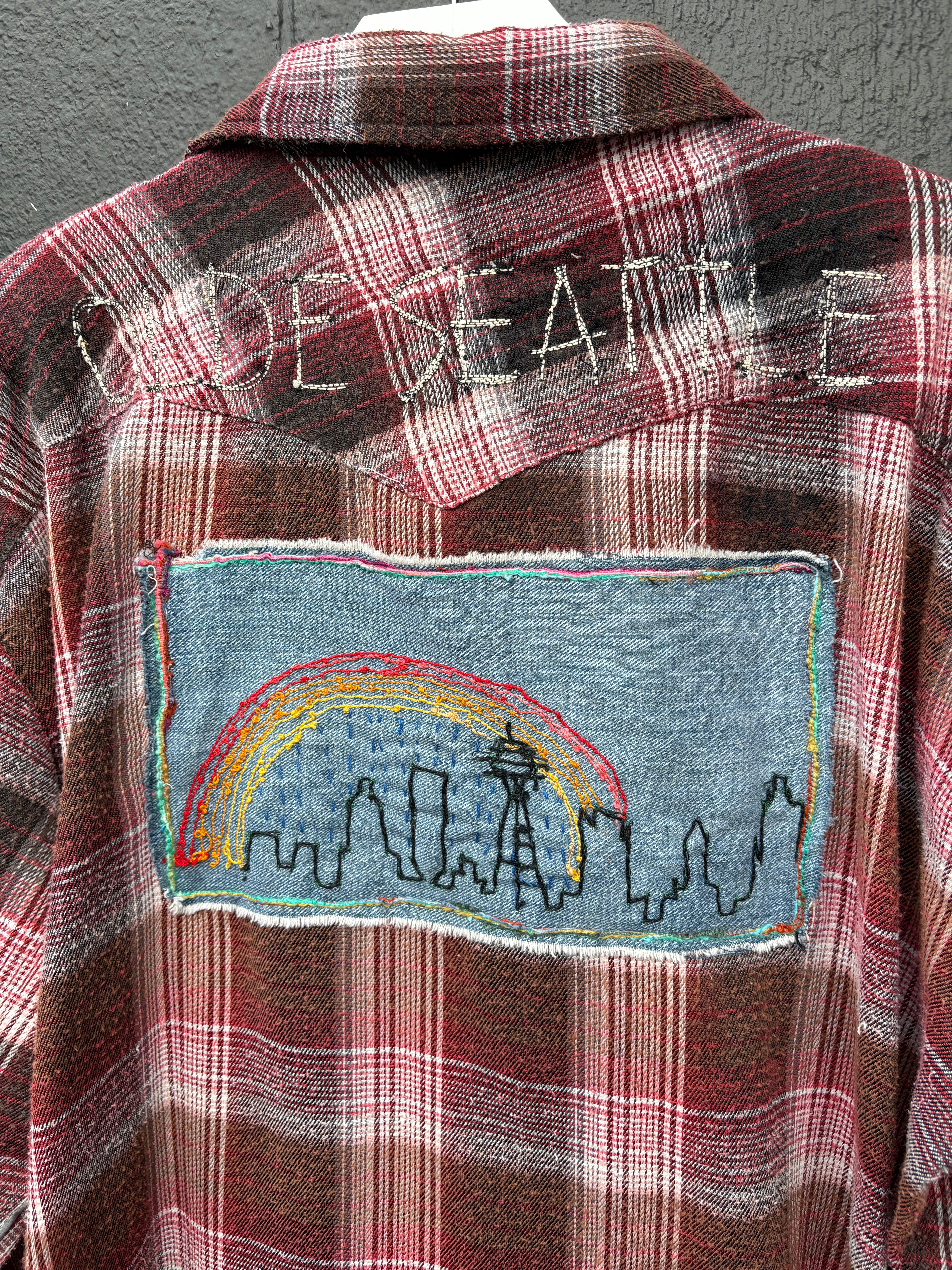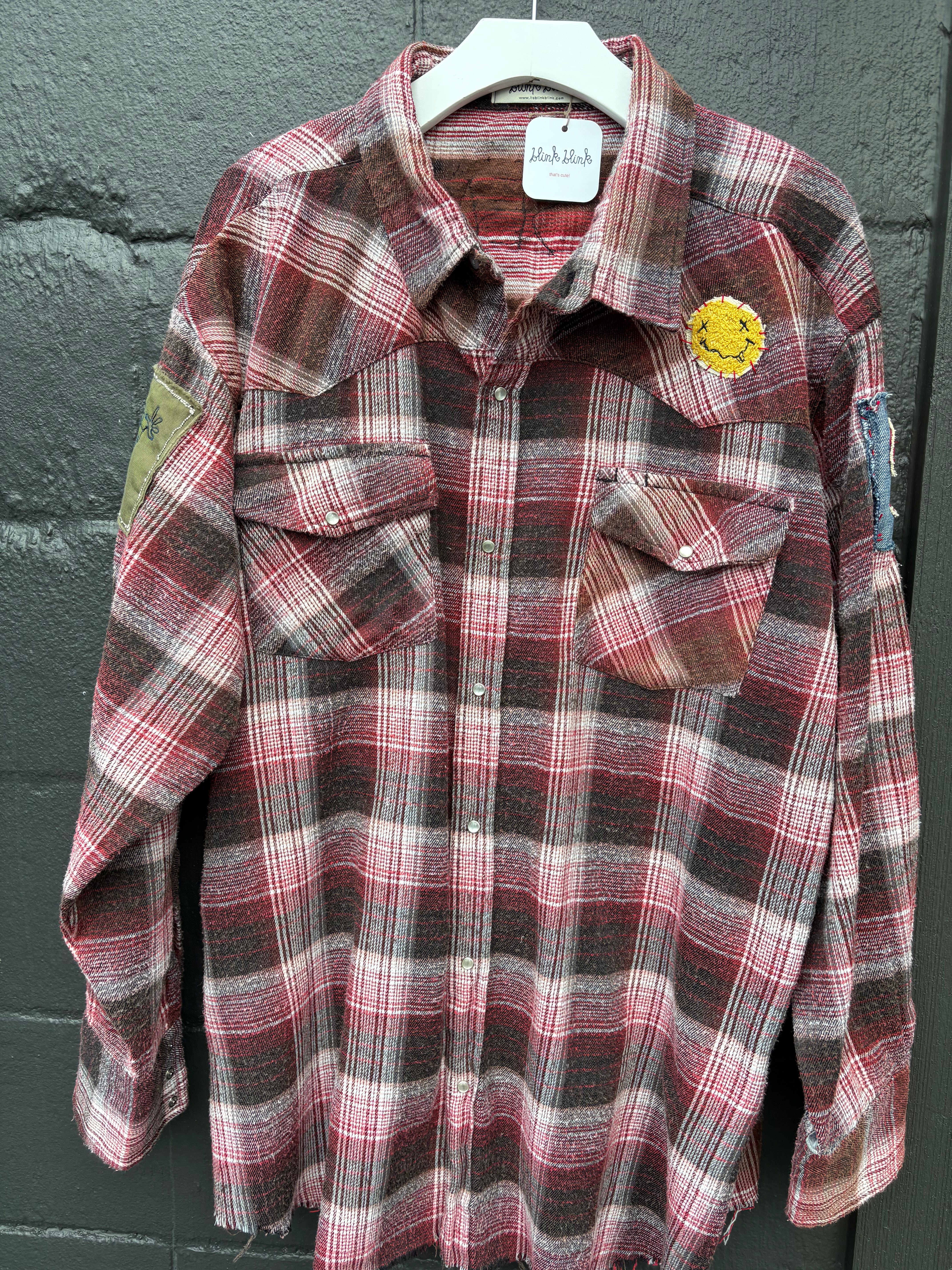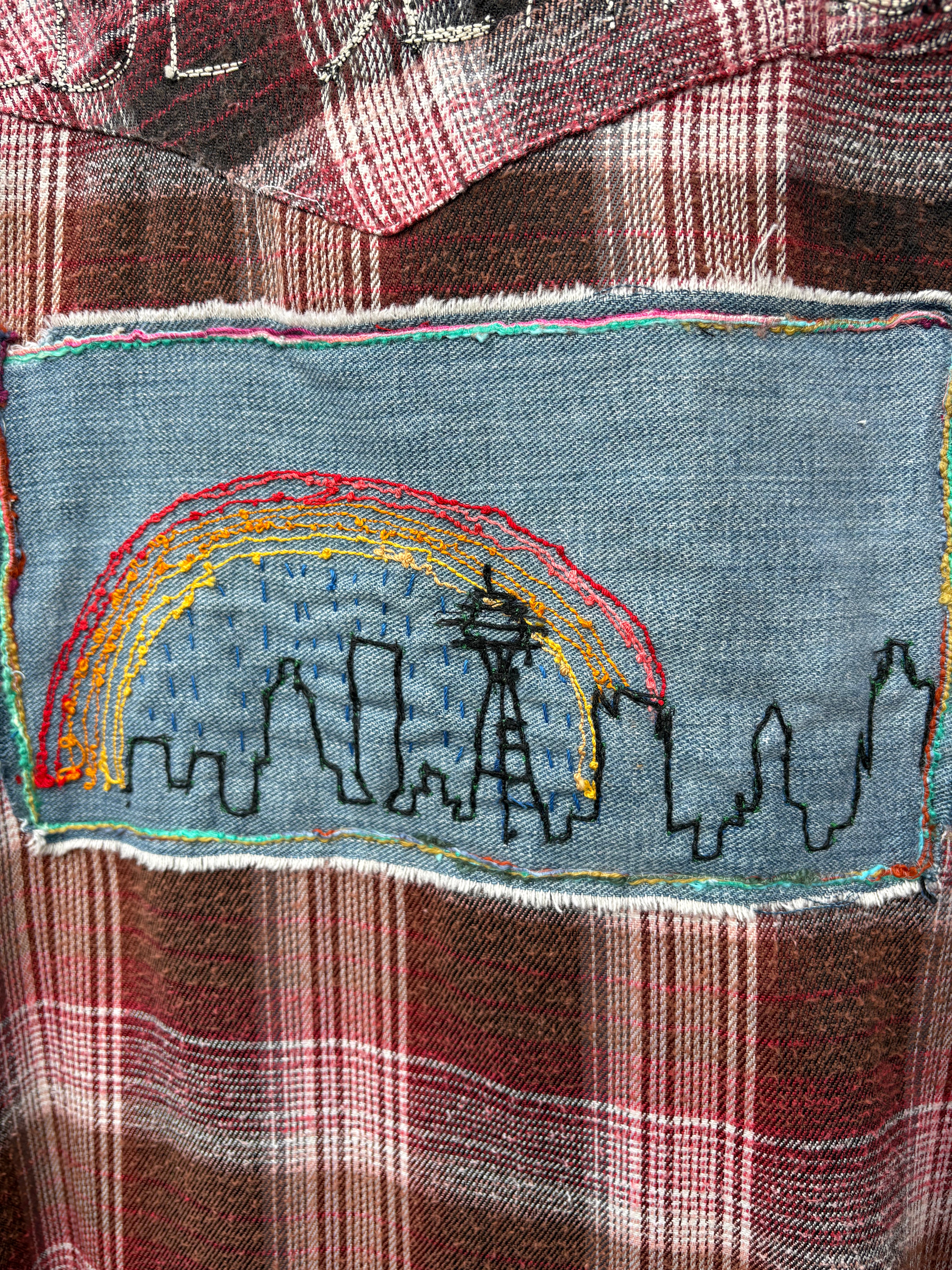 Each Boyfriend Shirt is one of a kind, men's sizes because we have found that men's shirts are durable and when we do our stitching, men's fabric holds it better.