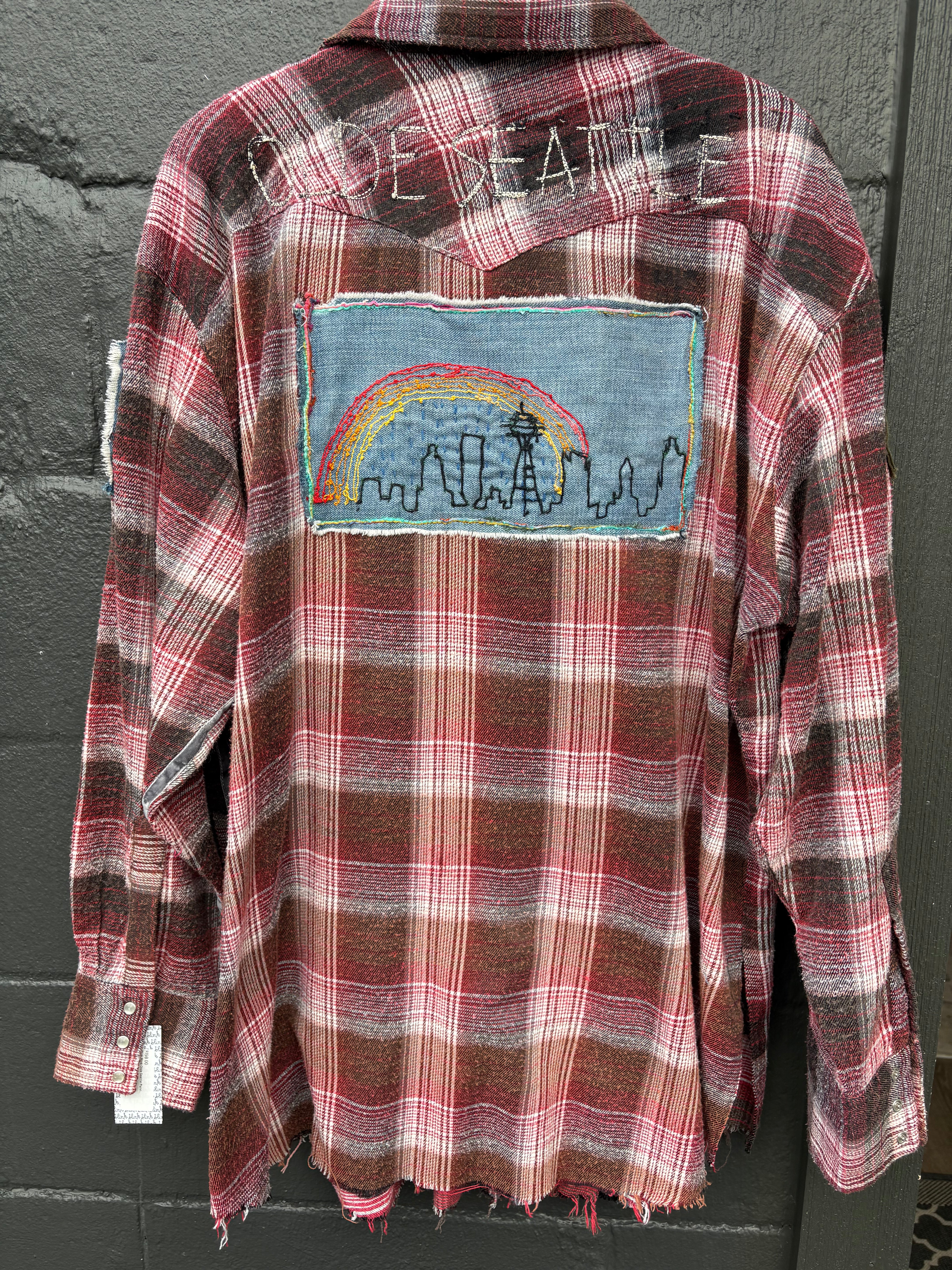 Blink Blink #34 Olde Seattle Custom Button Up Shirt- Burgandy/Brown/Cream/Grey Side Trim