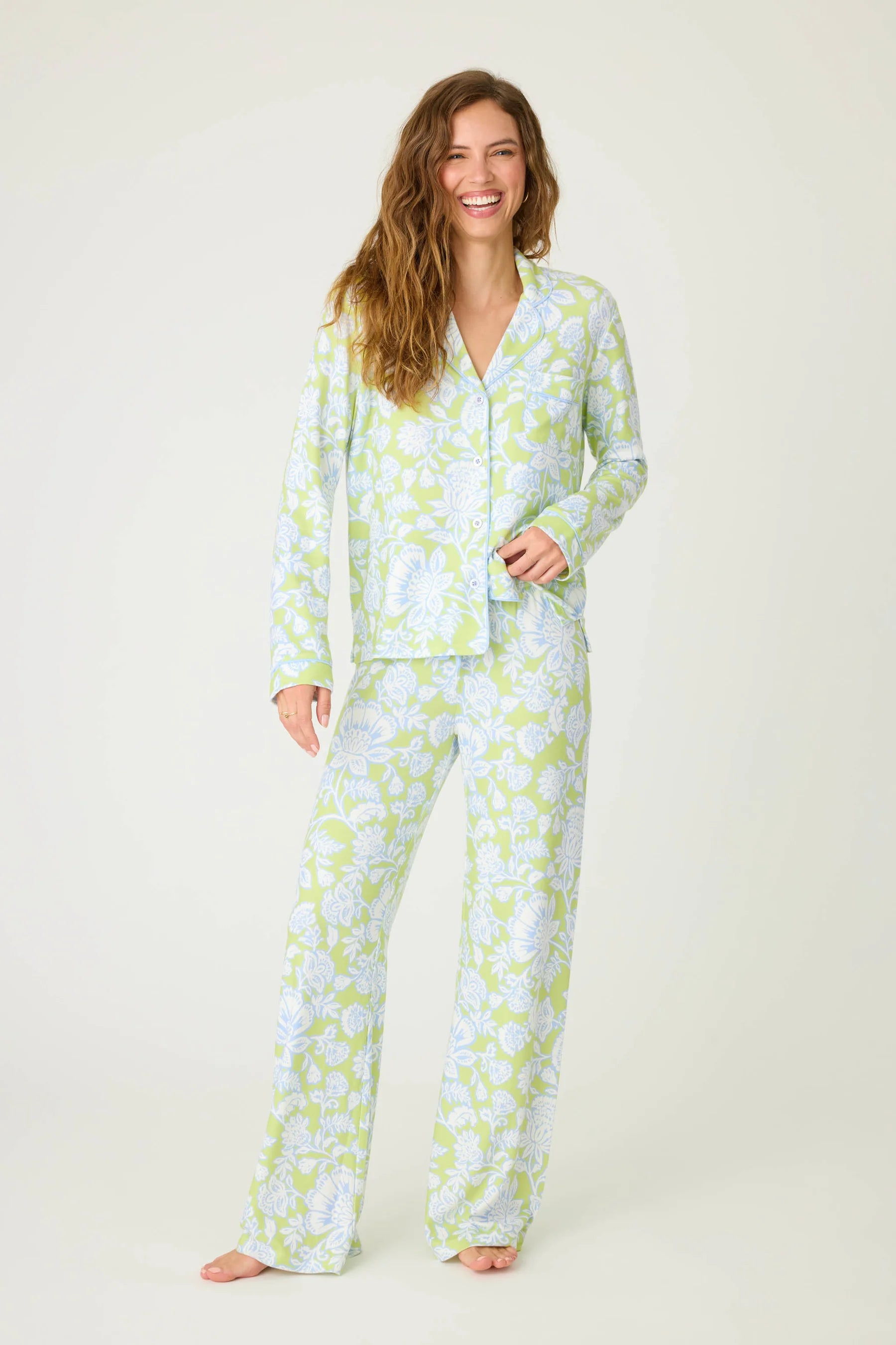 Still clinging to summer? Same. These wide-leg pants are crafted from our ridiculously soft butter jersey in an electric lime floral print that channels sunshine even as the days start to fade. The full-length silhouette is finished with a soft elastic waistband and light blue drawstring—ideal for sipping coffee by the window or stretching out with a good book. Pair it with the matching tank or shirt for a feel-good set you’ll wear straight into fall.