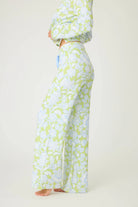 PJ Salvage Beautiful Life Floral Print Open Leg Pant- Electric Lime