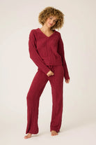 PJ Salvage Cozy Chenille Cable Knit V-neck- Port