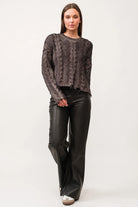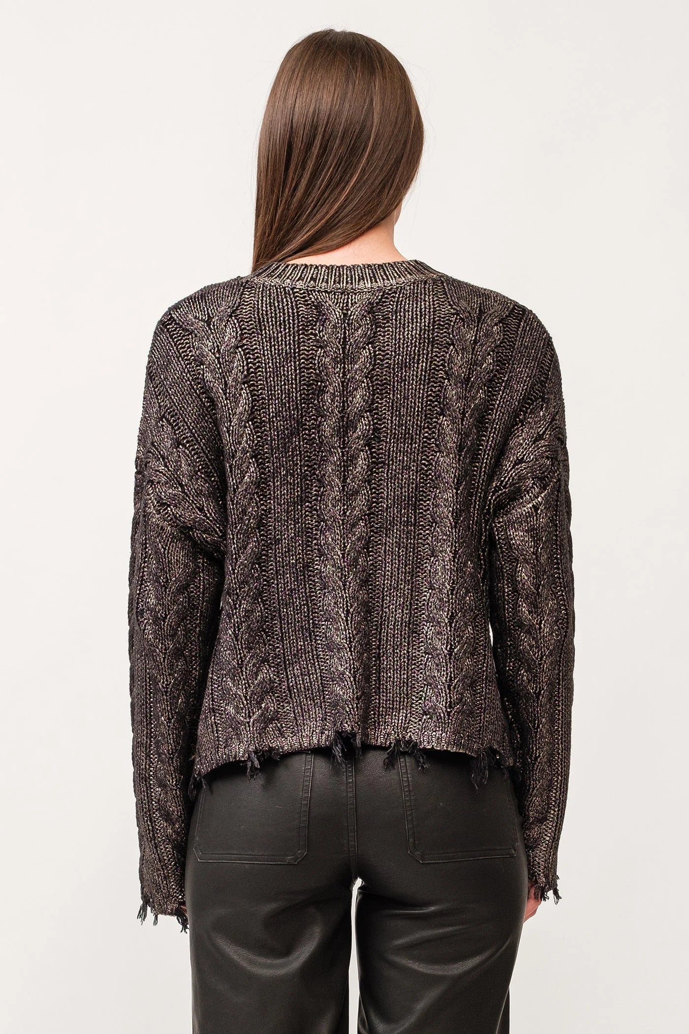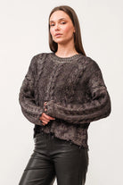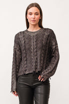 Dear John Kris Crew Neck Long Sleeve Relaxed Fit Sweater- Gunmetal