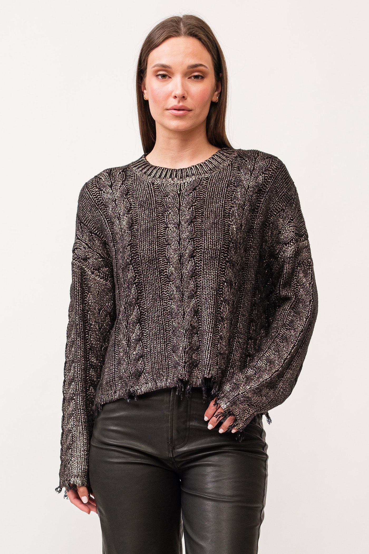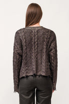 Kris crew neck long sleeve relaxed fit sweater in gunmetal offers timeless style and ultimate comfort for any occasion. Perfectly balanced with a casual elegance, this versatile piece can be dressed up or down to suit your lifestyle. Experience the soft, luxurious feel and refined look with this essential wardrobe staple with fringes.