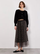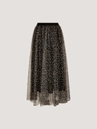 Apricot Leopard Tulle Long Midi Skirt- Brown
