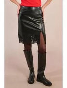 Molly Bracken Faux Leather Skirt w/ Lace- Black