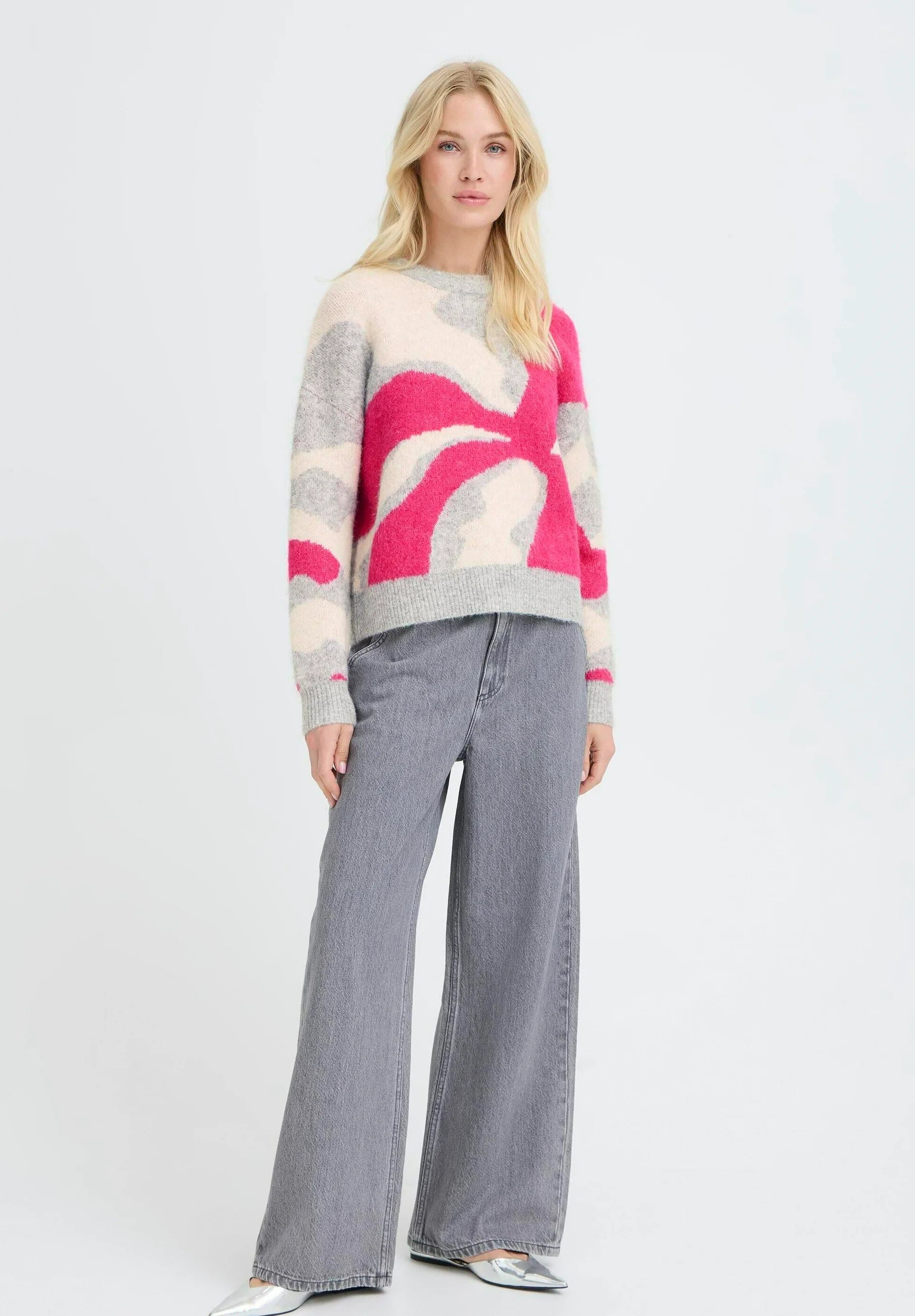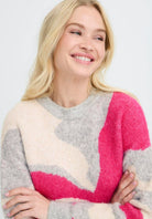 B. Young Byomea Abstract Print Crewneck Sweater- Pink/Grey/Cream